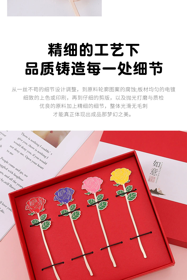 금속 합금 북마크 발렌타인 데이 로즈 북마크 휴일 선물 기념품 절묘한 선물 상자 북마크스토어 가기