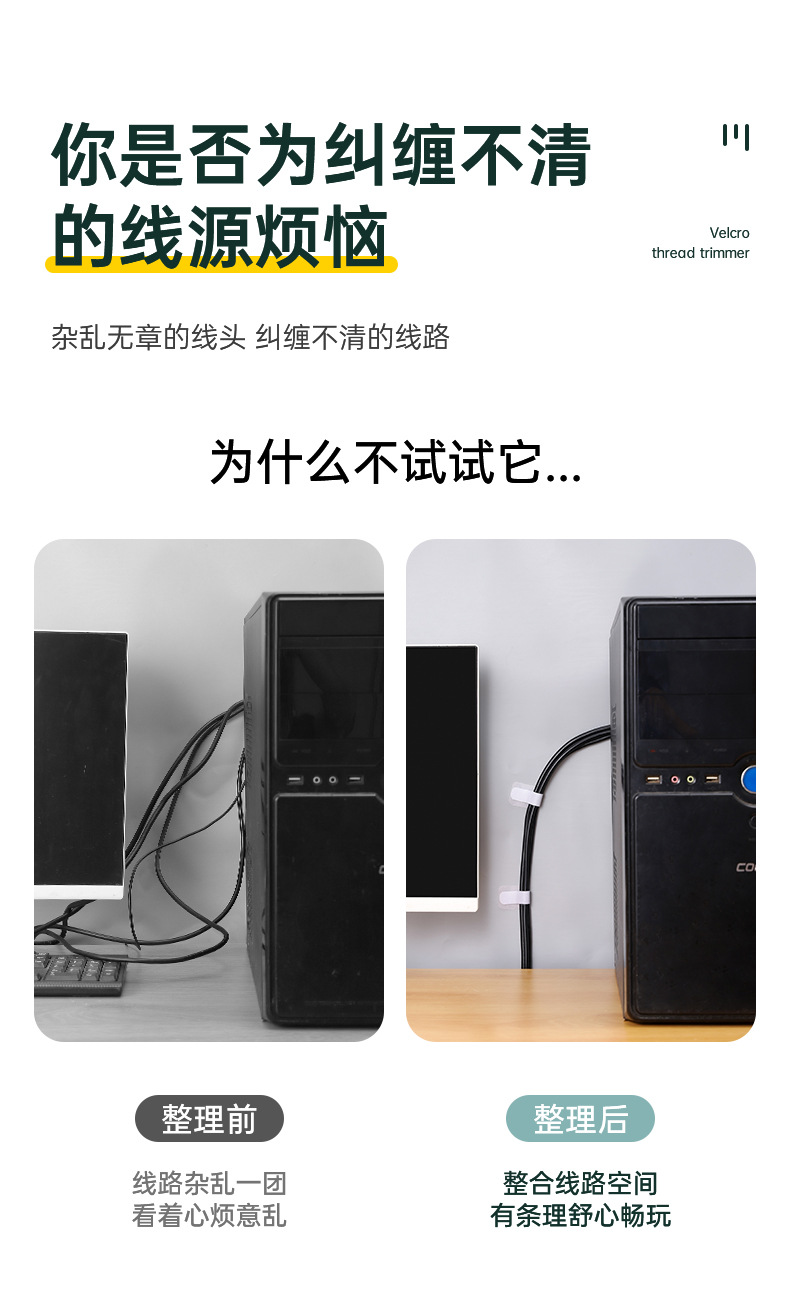 데이터 케이블 타이 도매 무타공 가정용 다기능 전선 고정 백투백 자가 접착 케이블 정리 매직 테이프스토어 가기