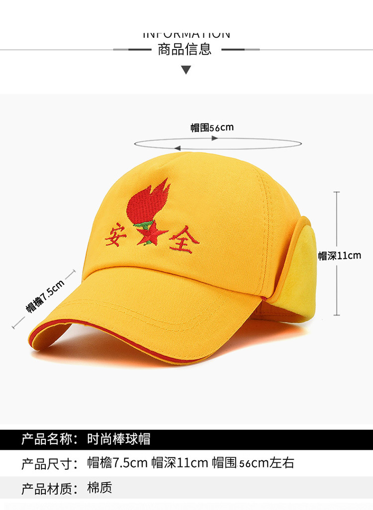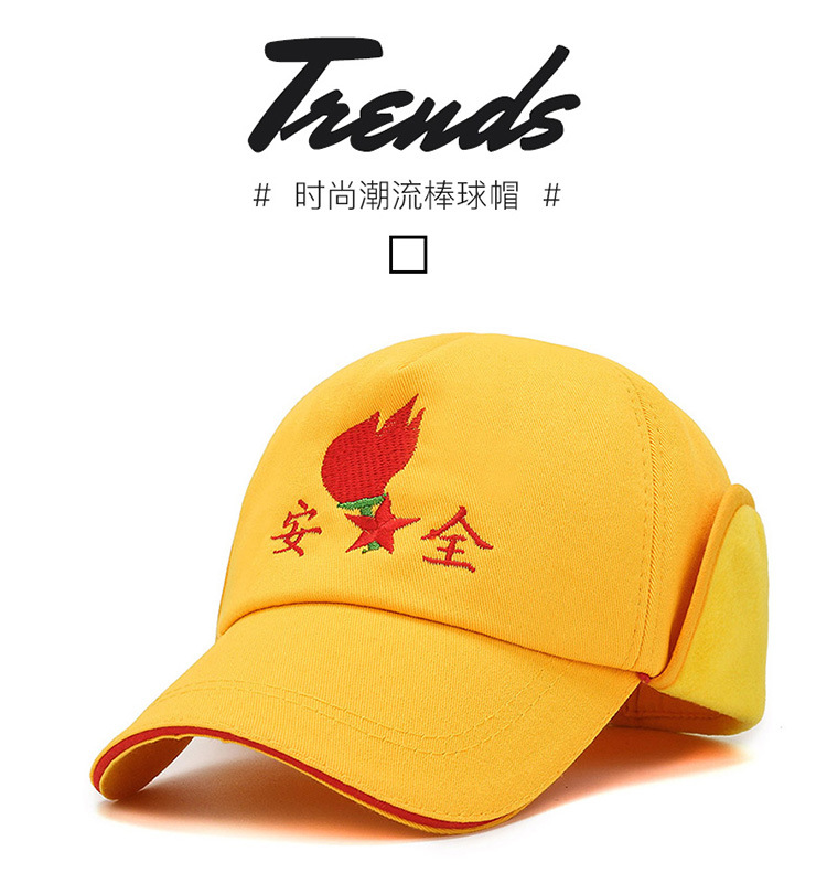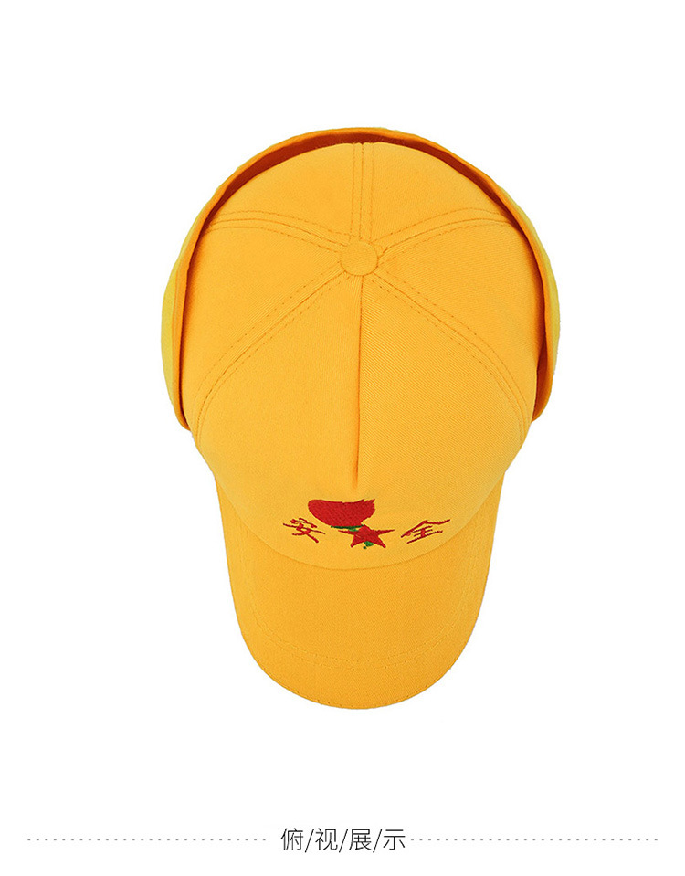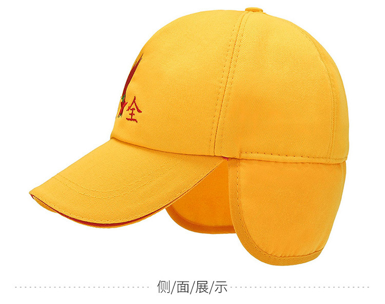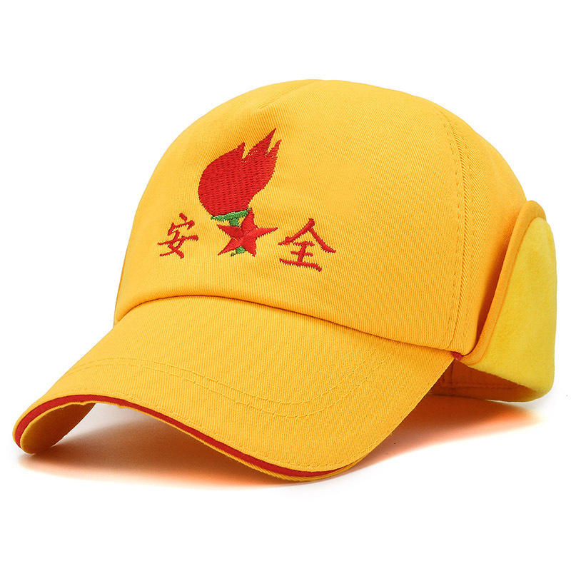 도매 면 겨울 기모 따뜻한 초등학교 학생 면 모자 작은 노란색 모자 자수 어린이 유아 교통 안전 모자