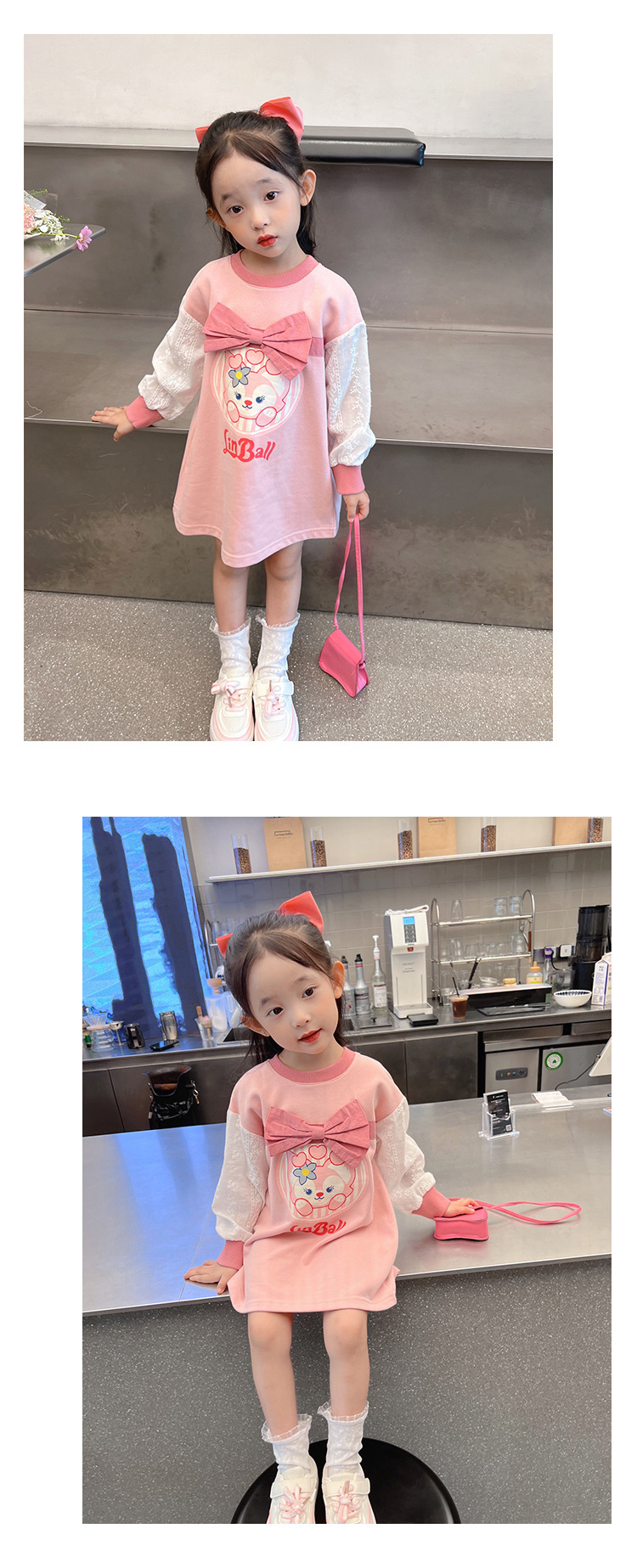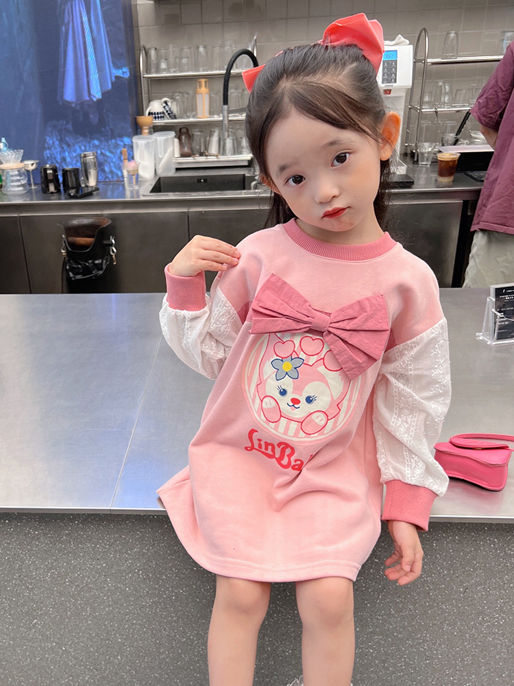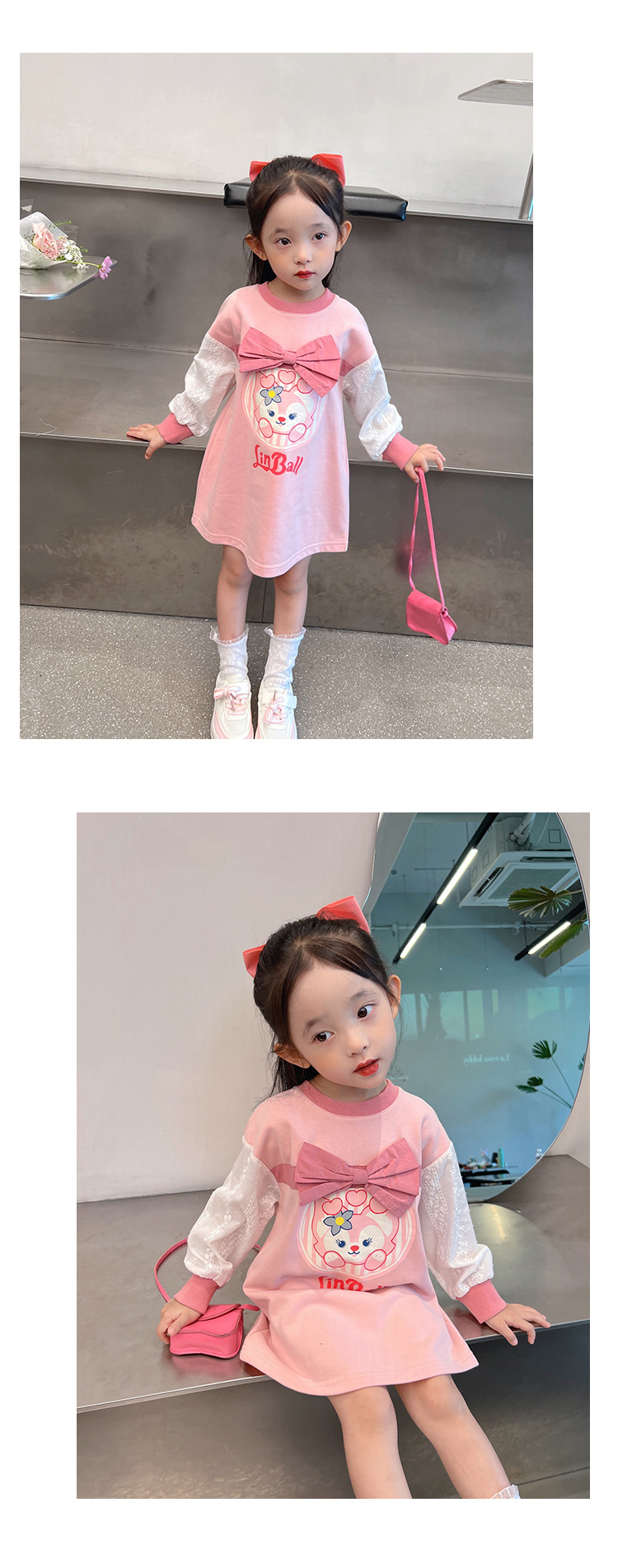 아름다운 소녀 세련된 원피스 새로운 긴 소매 유행 핑크 흰 활 만화 Linnaebel 공주 원피스스토어 가기