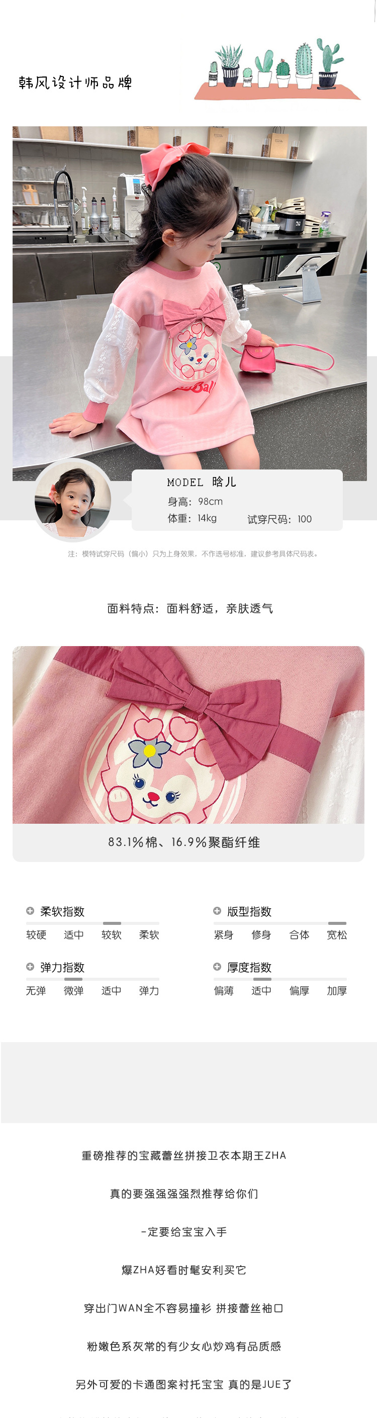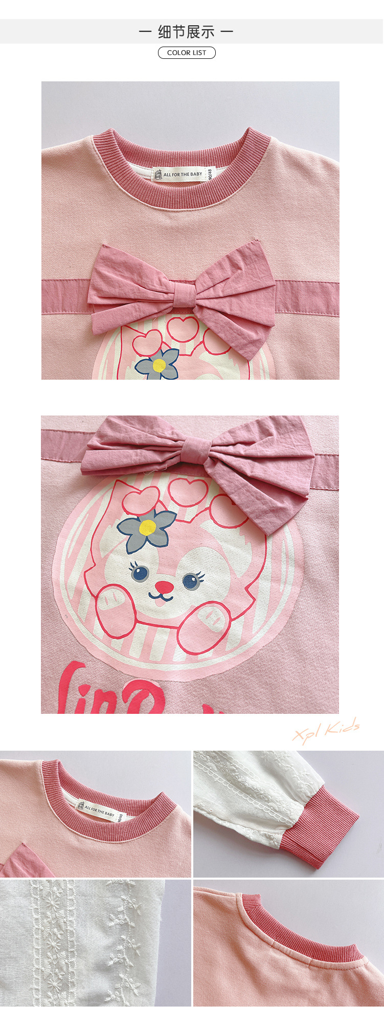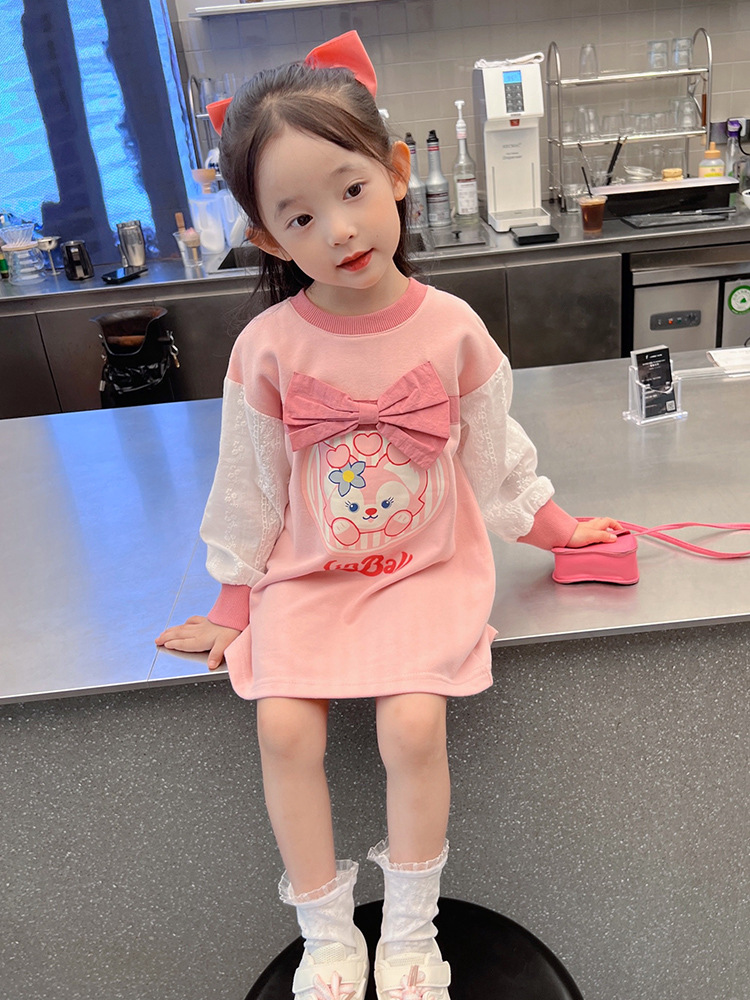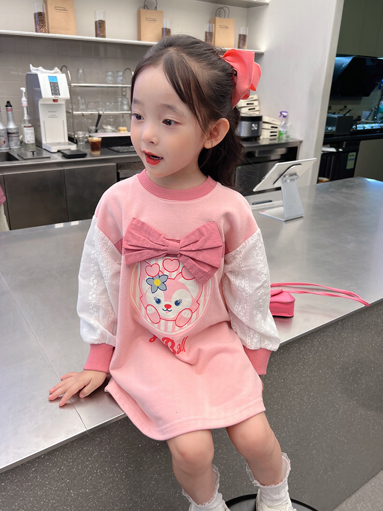 아름다운 소녀 세련된 원피스 새로운 긴 소매 유행 핑크 흰 활 만화 Linnaebel 공주 원피스스토어 가기