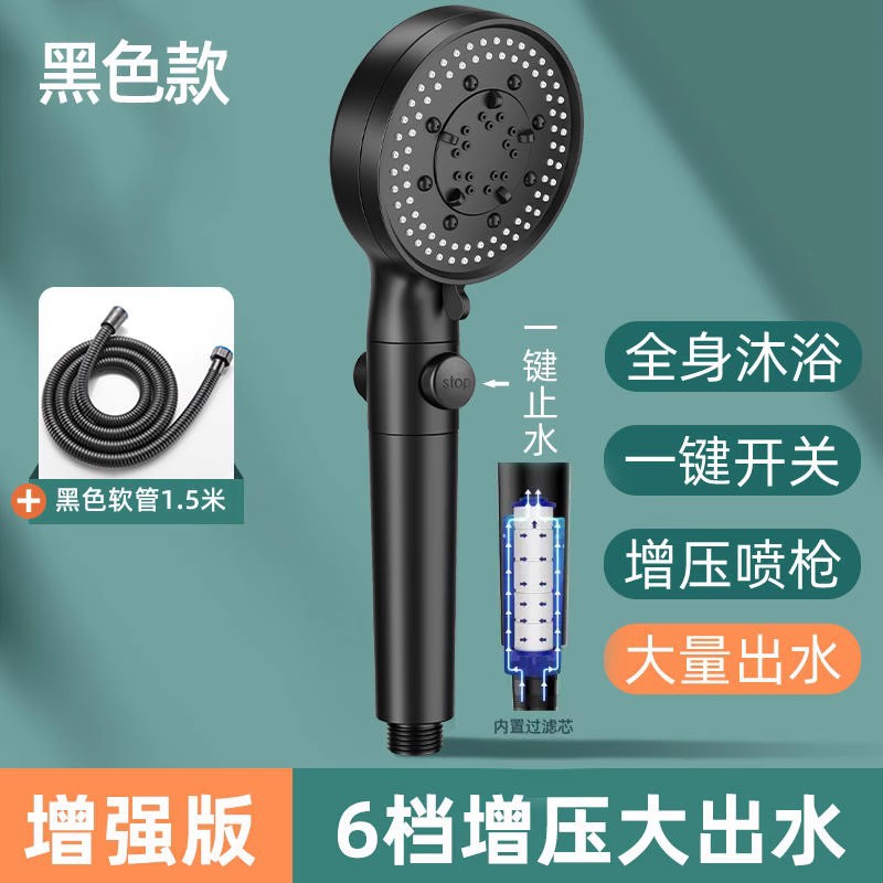 • ⭐깨끗한 물 필터⭐[6 단 기어 강력한 가압 원버튼 워터 스톱]-흑요석 블랙 + 오리지널 방폭 튜브