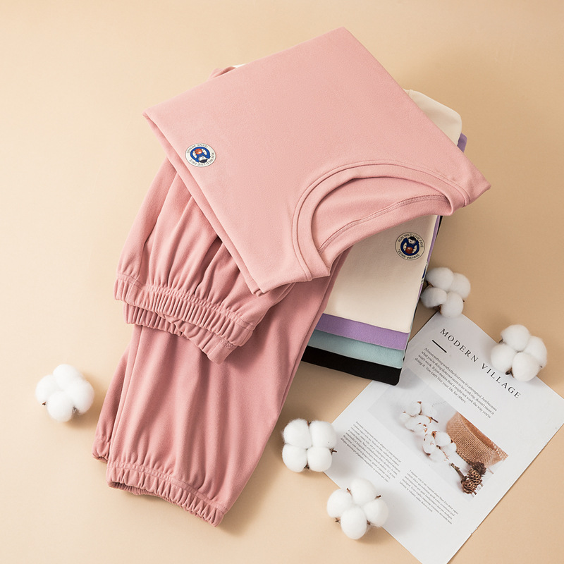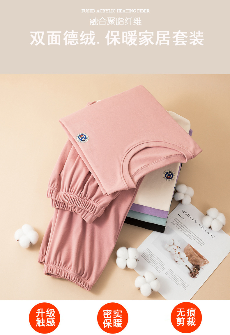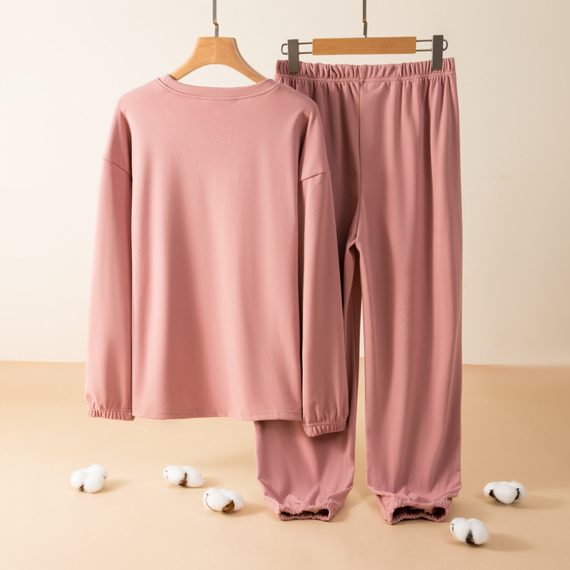 드 롱 캐주얼 세트 여성의 기모 두꺼운 난방 따뜻한 가정 옷 가을과 겨울 외부 웨어러블 홈 긴 소매 바지
