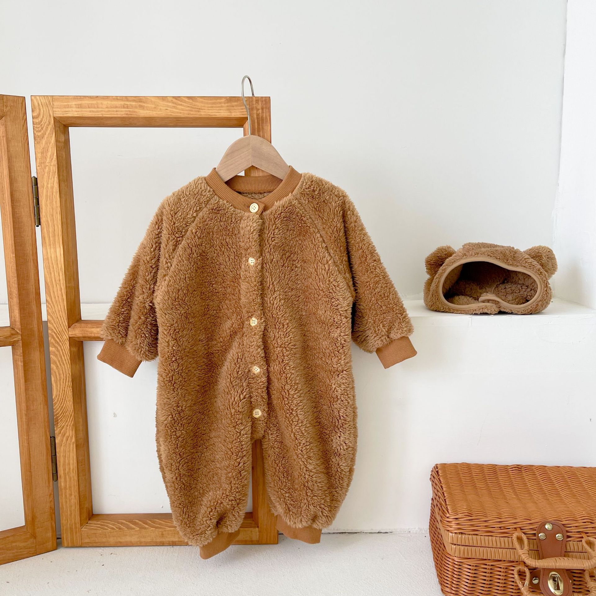 가을과 겨울 아기 점프 슈트 겨울 단색 곰 두꺼운 양면 벨벳 아기 점프 슈트 따뜻한 등산 세트스토어 가기
