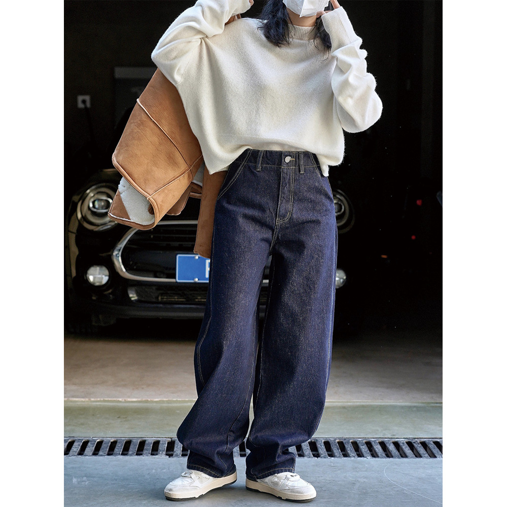 겨울 새로운 일본식 복고풍 곡선 하이 웨이스트 와이드 레그 청바지 두꺼운 머리 긁기 느슨한 캐주얼 바지 여성용스토어 가기