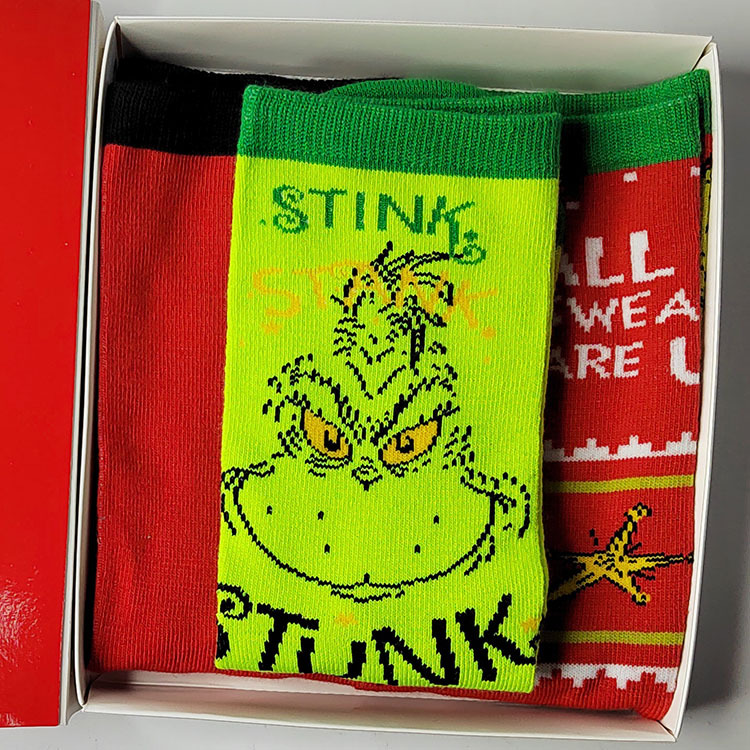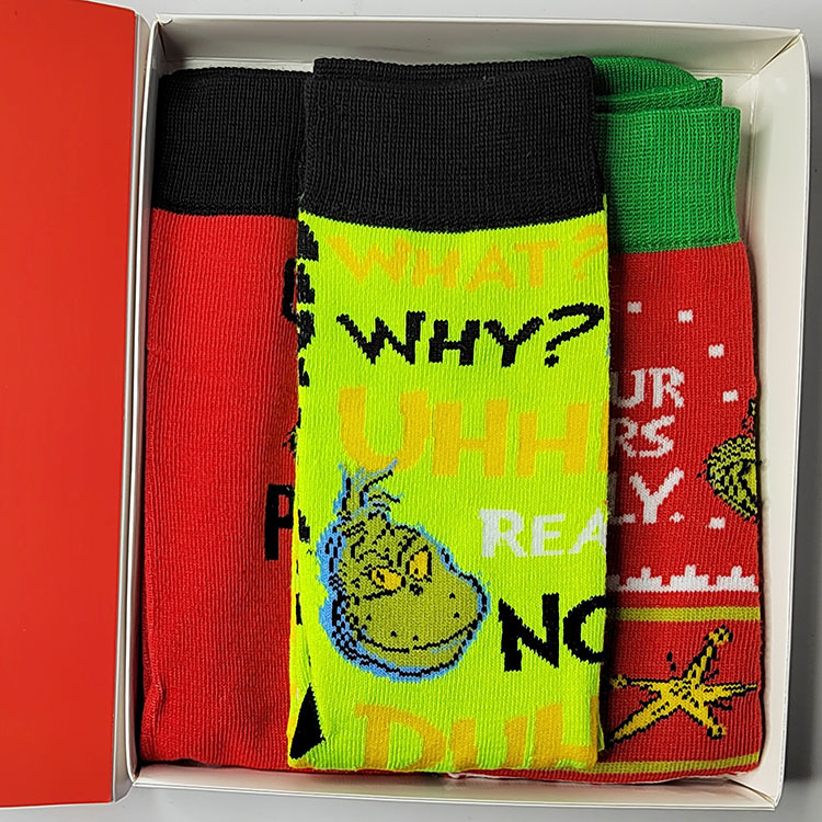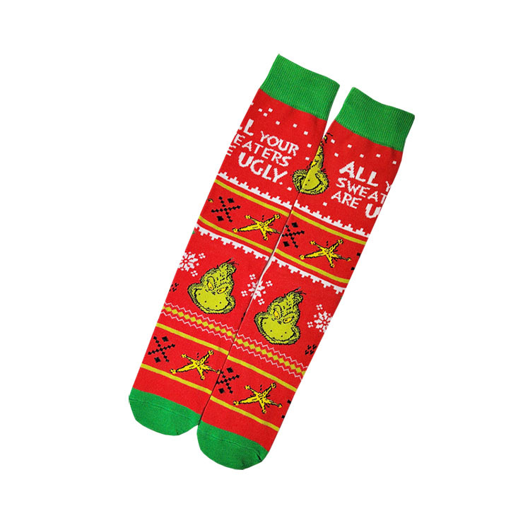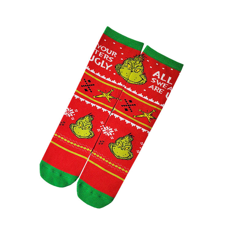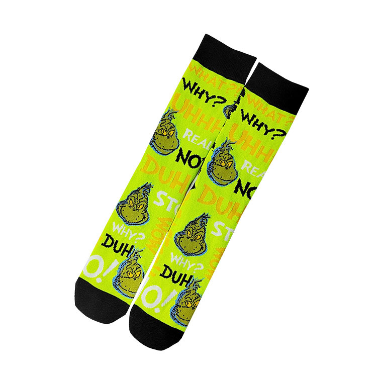 새로운 유럽과 미국의 만화 남성 스포츠 양말 개인화 된 애니메이션 Grinch 선물 상자 유행 커플 양말