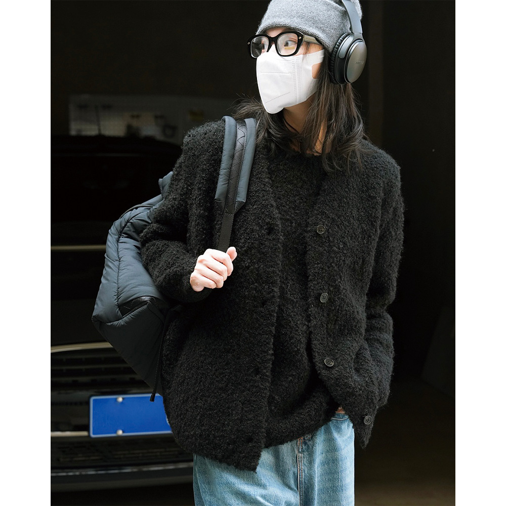 겨울 새로운 한국어 복고풍 게으른 루프 원사 울 V-넥 조끼 재킷 민소매 스택 니트 가디건 여성용스토어 가기