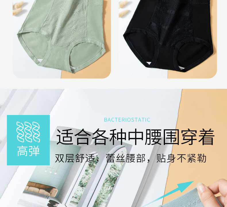 면 속옷 여성용 사계절 얇은 원활한 하이 웨이스트 브리프 면 항균 여성 통기성 반바지 도매스토어 가기
