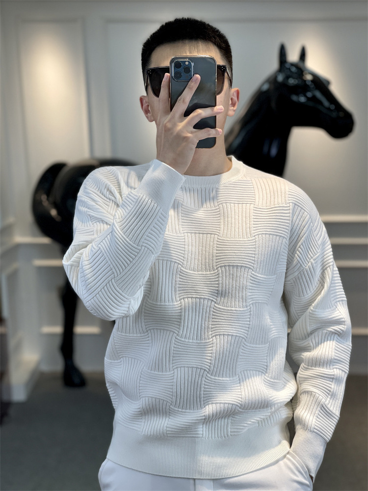2022 남성용 유러피언 스테이션 슬림핏 스웨터 라운드 넥 가을과 겨울 캐주얼 모든 매치 심플 풀오버 긴팔 니트 베이스 셔츠
