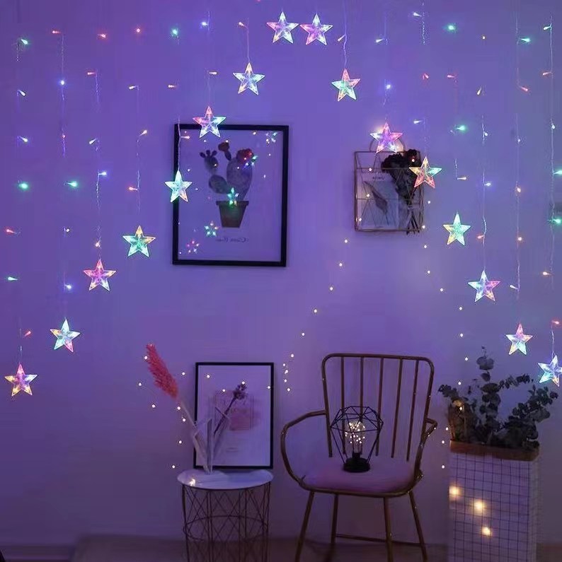 재고 태양 크리스마스 커튼 라이트 LED 거꾸로 V 라이트 휴일 석고 라이트 문자열 홈 장식 별