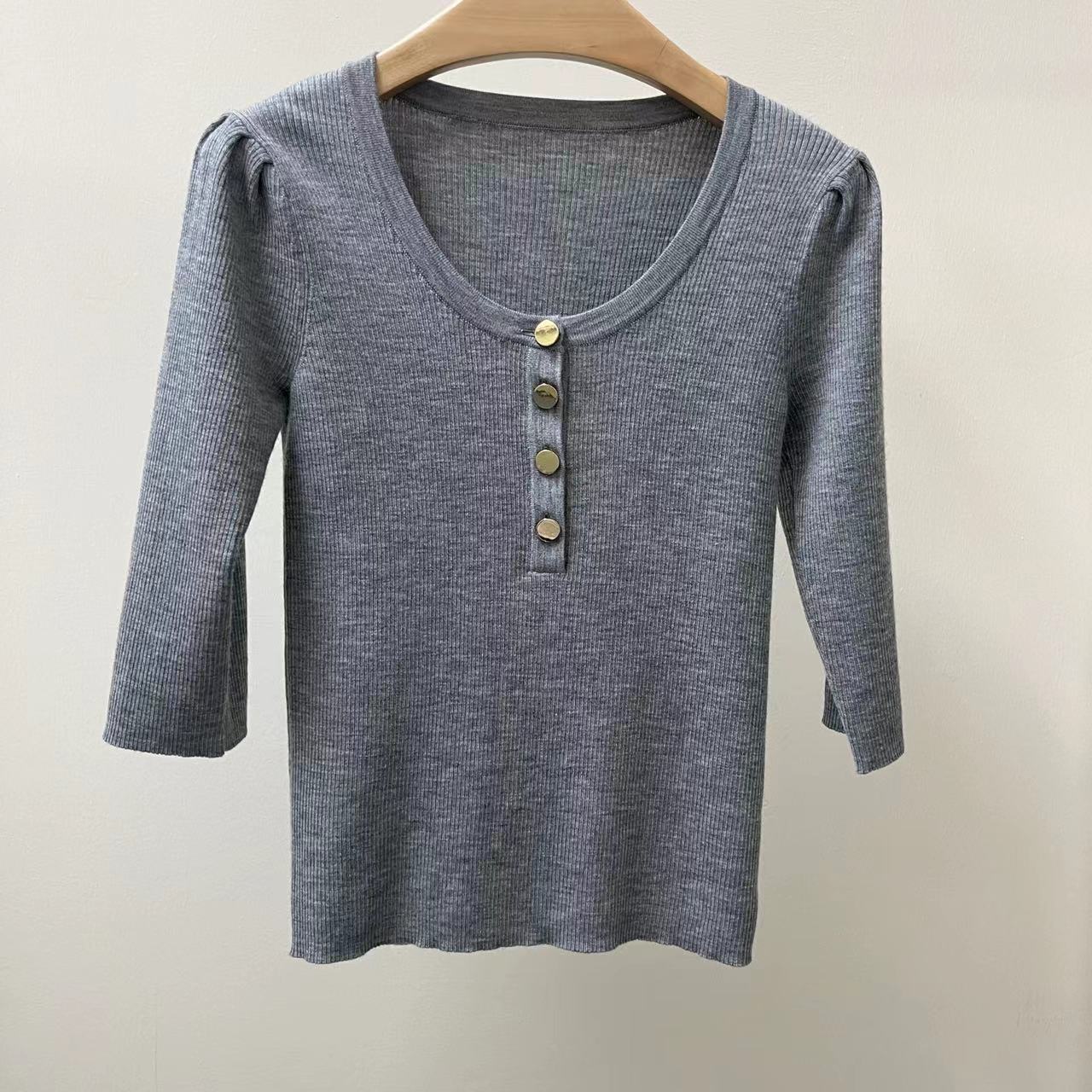 VS 가을 모직 스웨터 여성의 피트 스트립 스트레치 Worsted 울 원사 공주 슬리브 패션 슬림 모든 매치 그레이