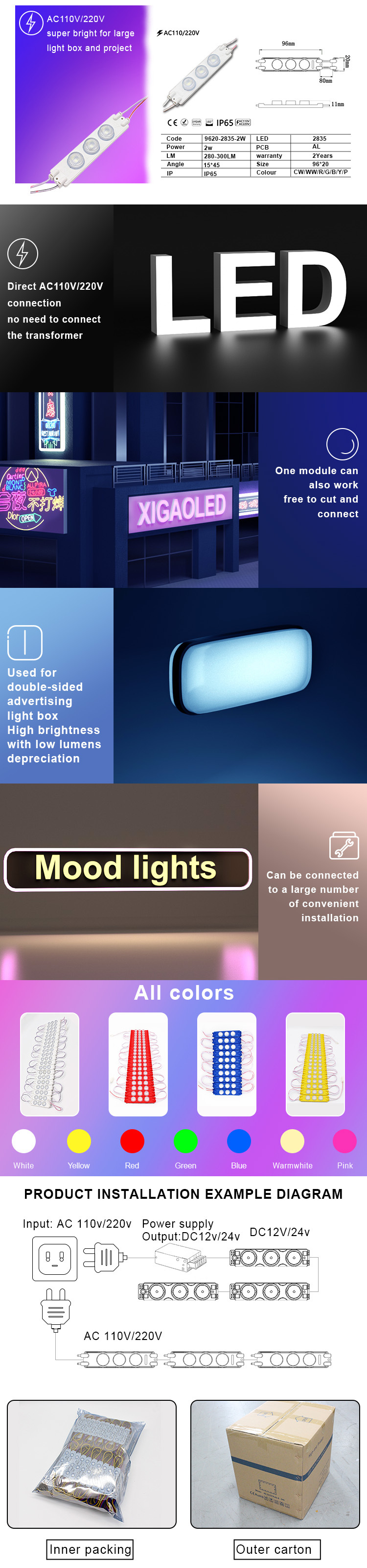 고전압 모듈 사출 AC 측 광원 광고 발광 로고등 양면 라이트 박스 LED 직판