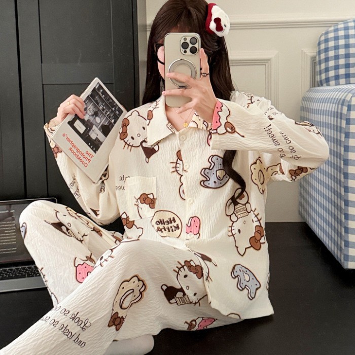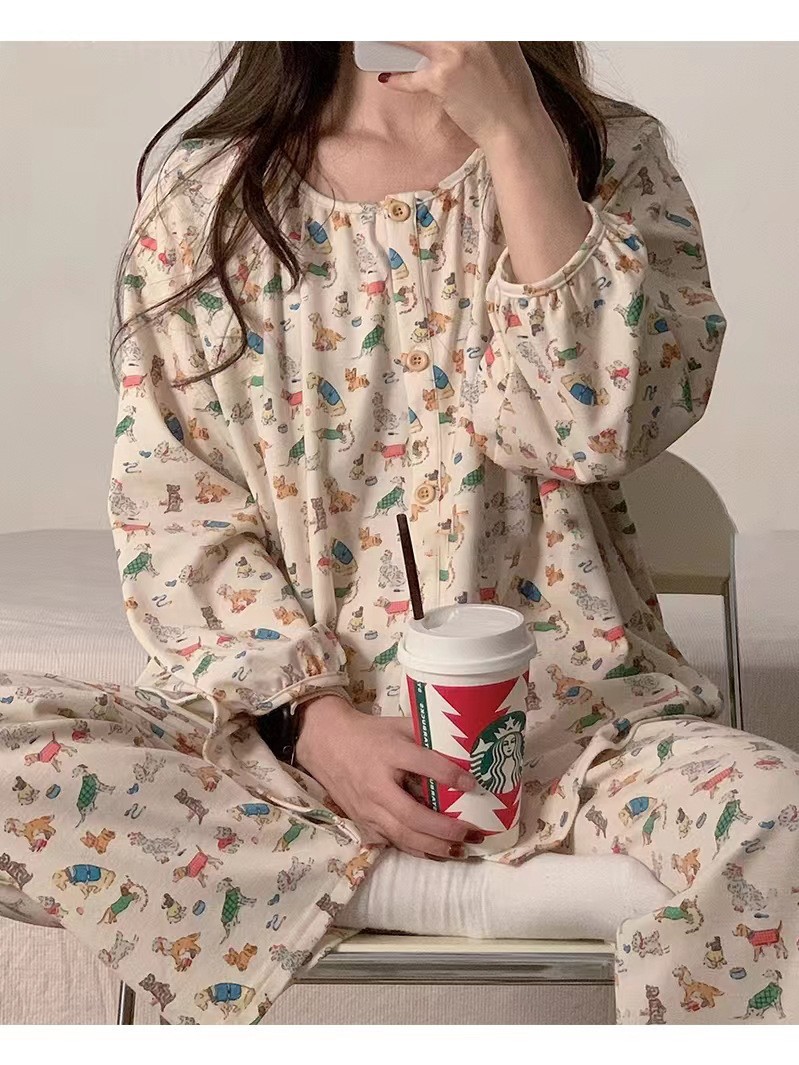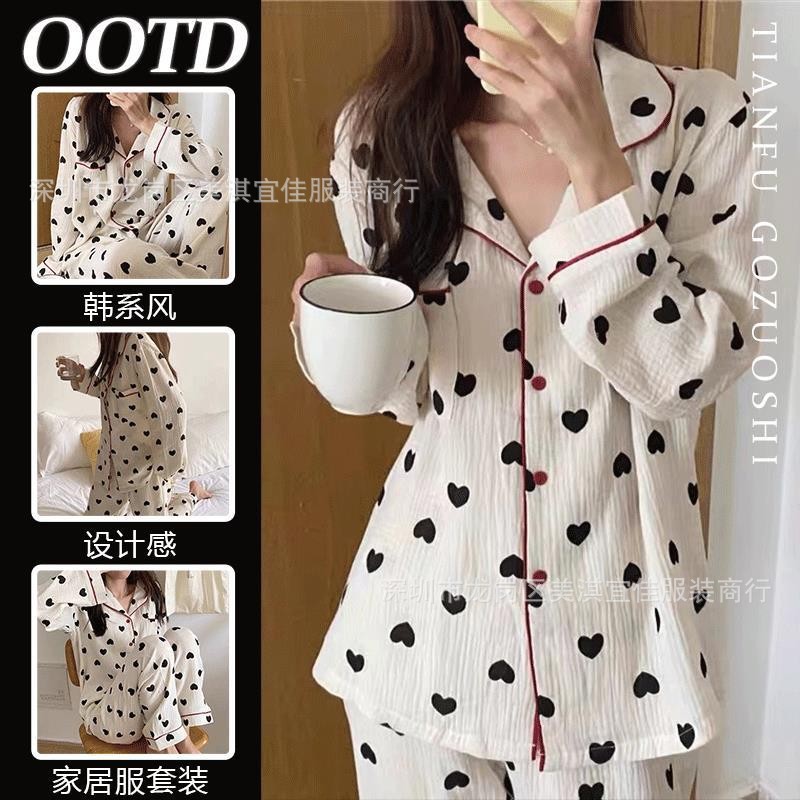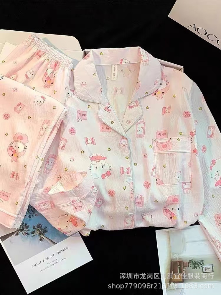[긴팔 바지] 외국교역, 국경 간 한국 잠옷 여성 가디건 달콤한 일본식 봄과 가을스토어 가기