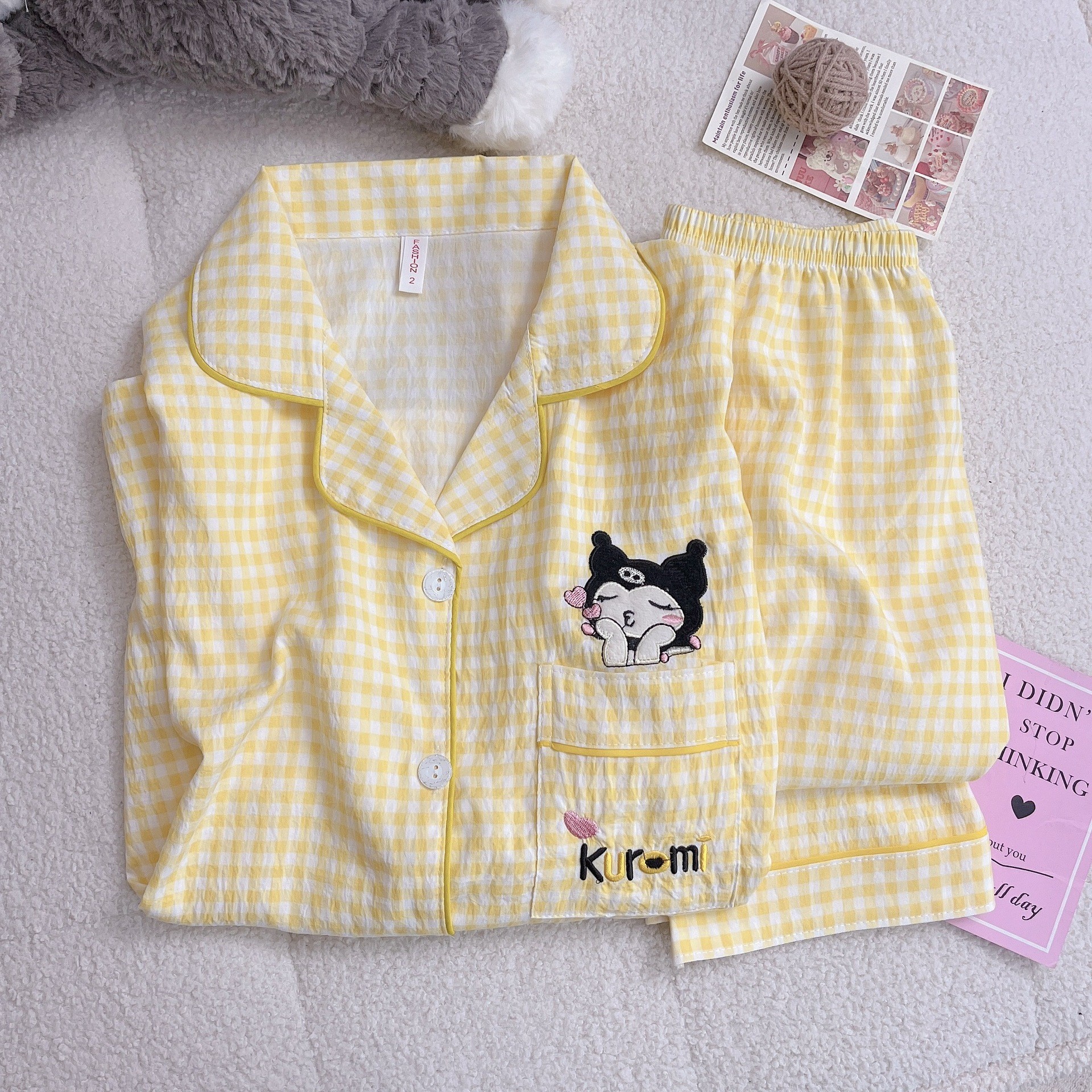 • 긴팔 클라우드 코튼 옐로우 체크 무늬 쿠로 팬
