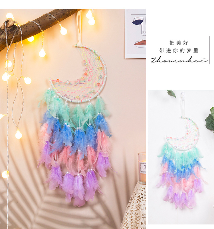 새로운 달 꿈 포수 벨 펜던트 홈 도어 장식 공예 자동차 장식품 수제 바람 차임 도매