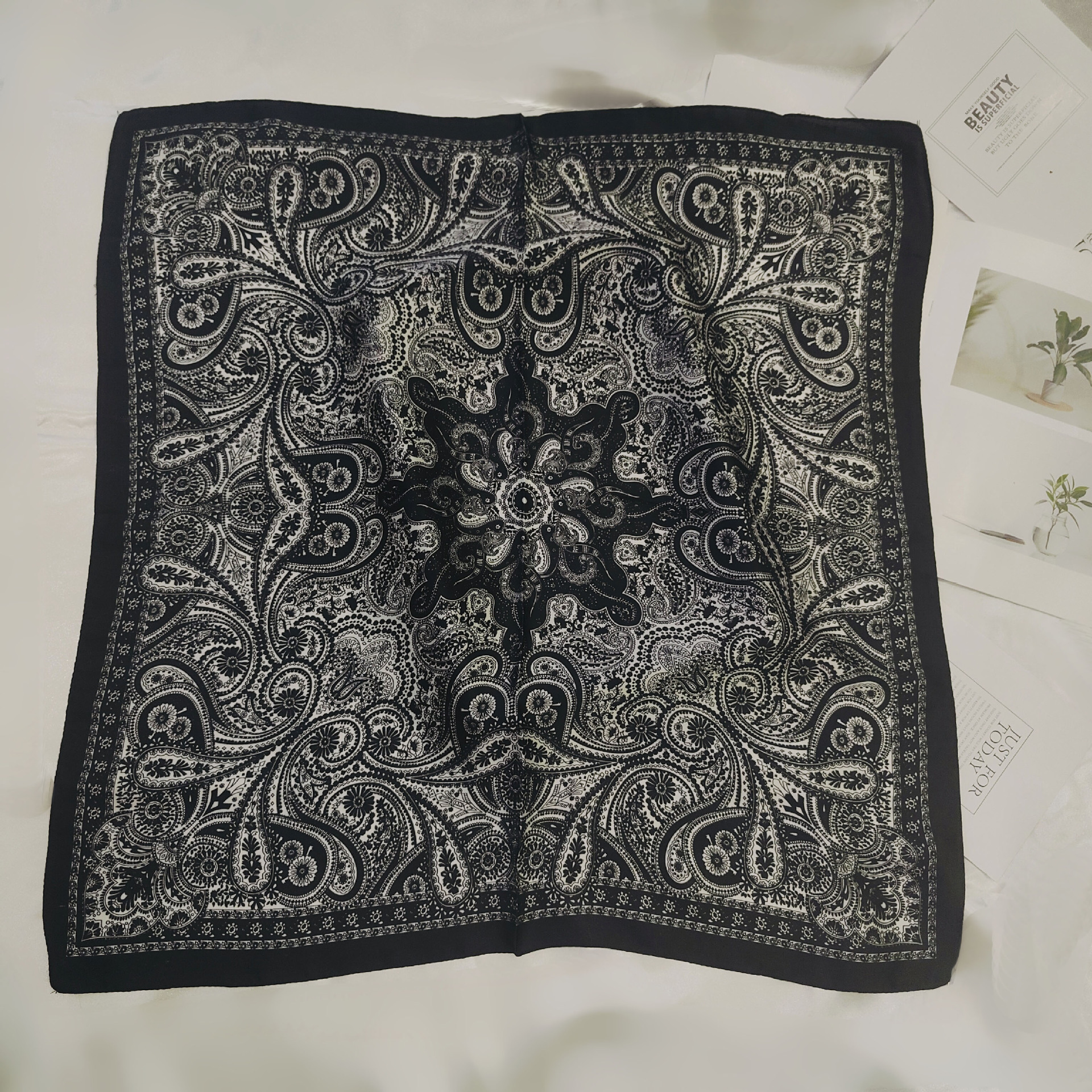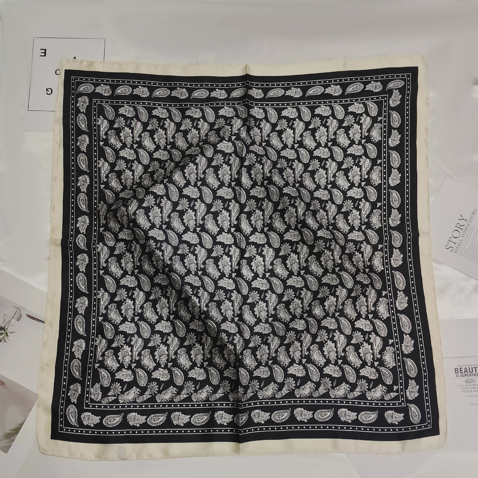 • 흑백 캐슈 실크 스카프
