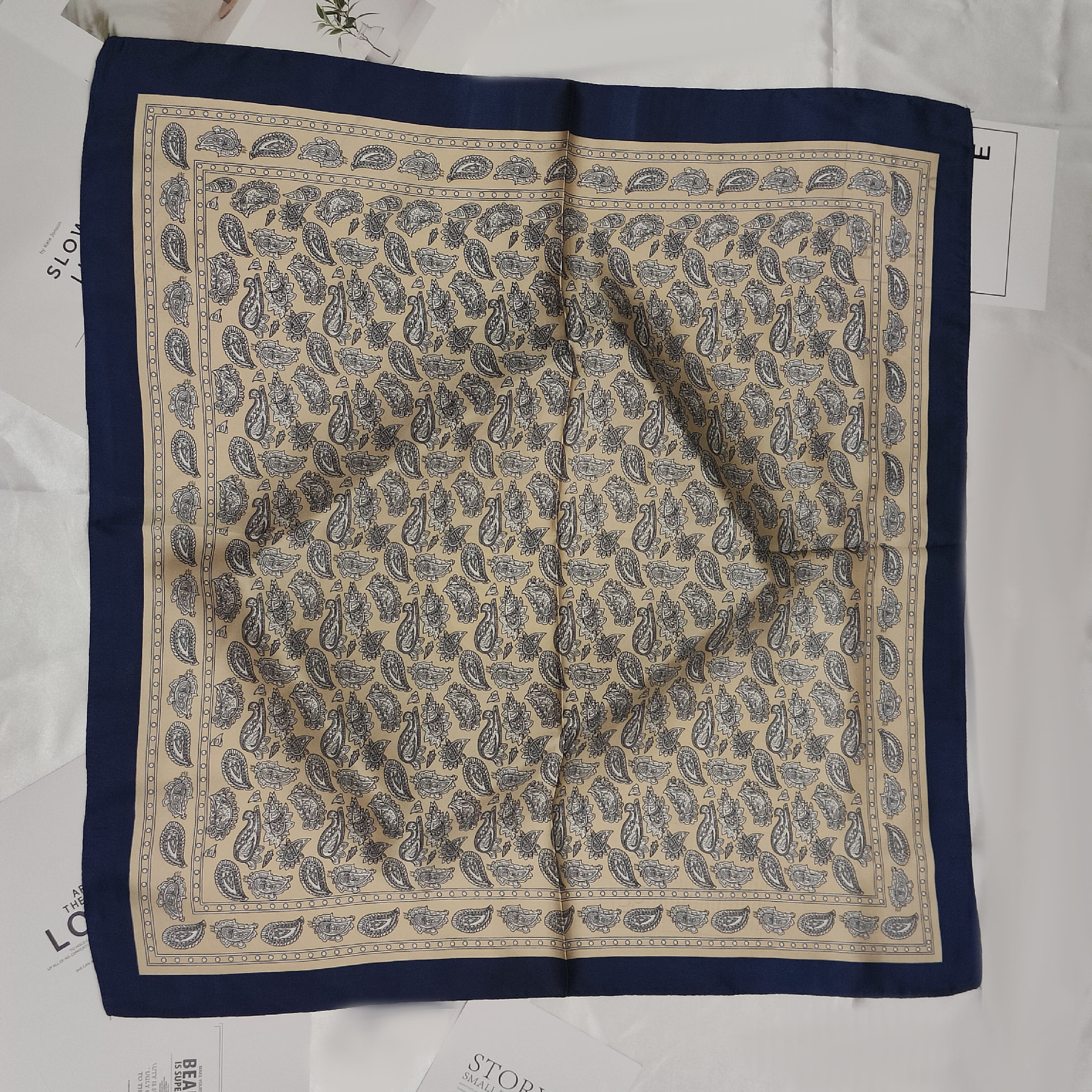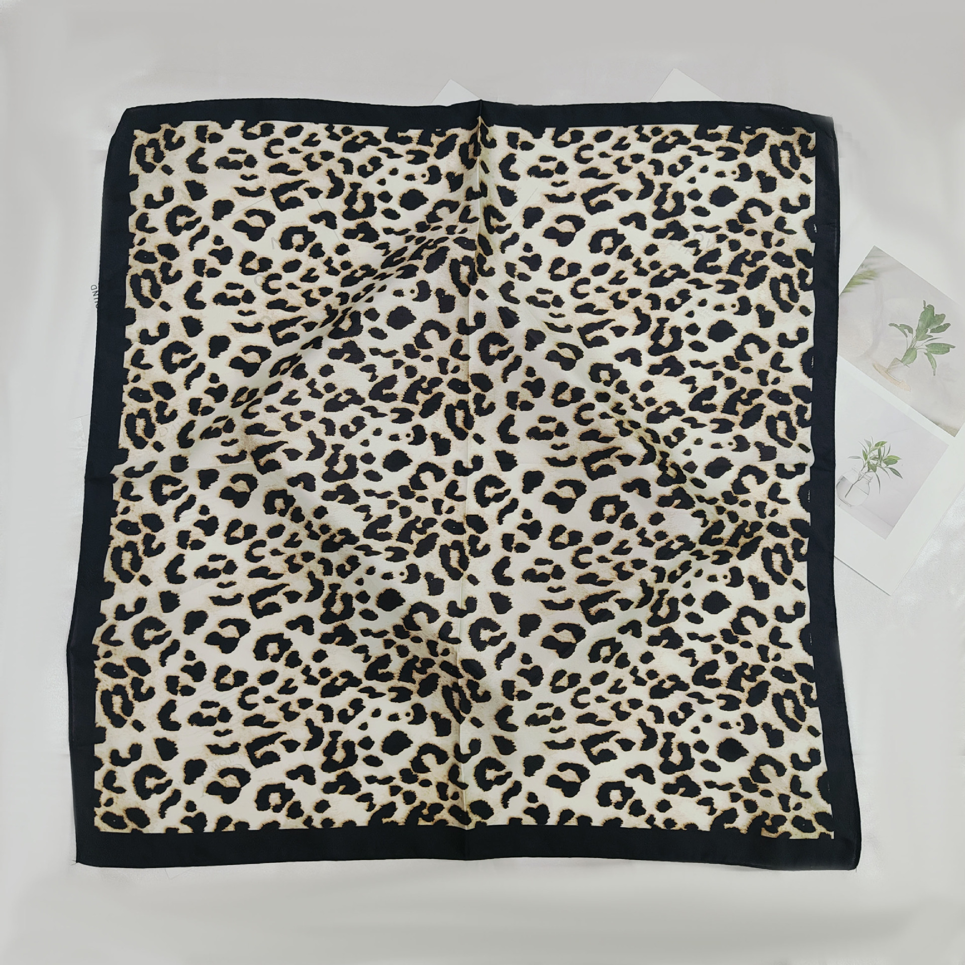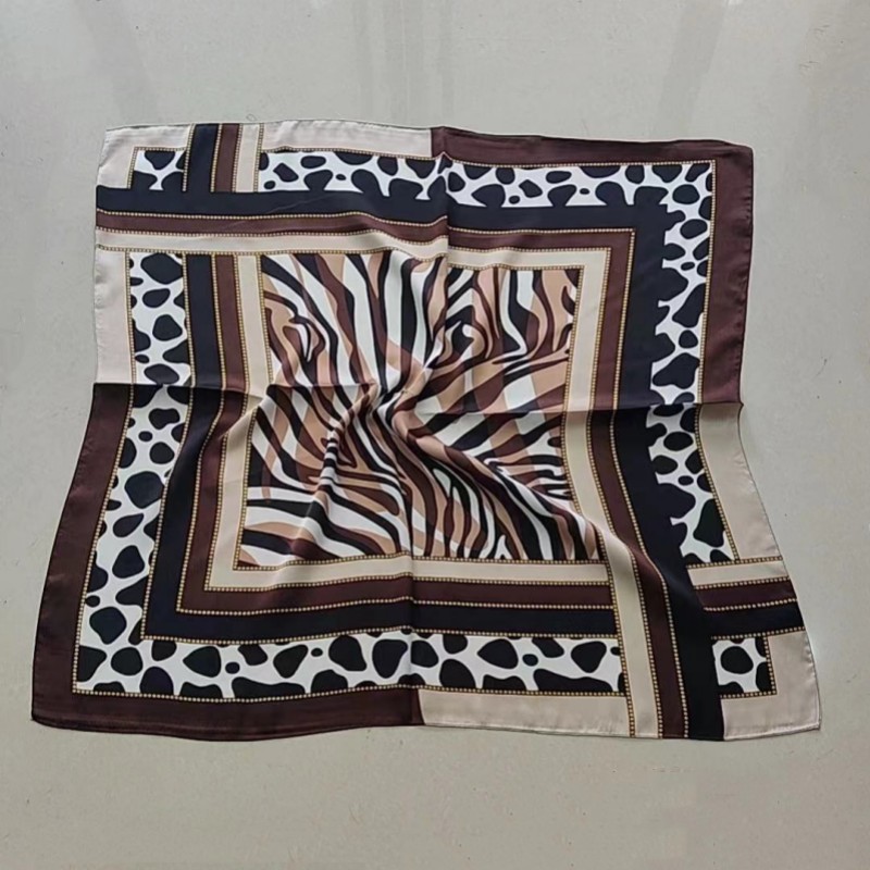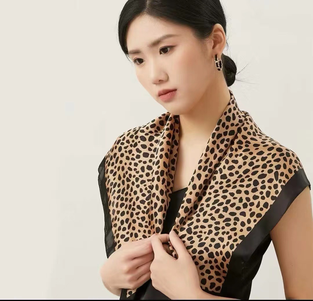 고급스러운 작은 사각 스카프 여성용 캐슈 플라워 스카프 한국 크로스보더 재고 모조 레오파드 프린트 사각 스카프 도매스토어 가기