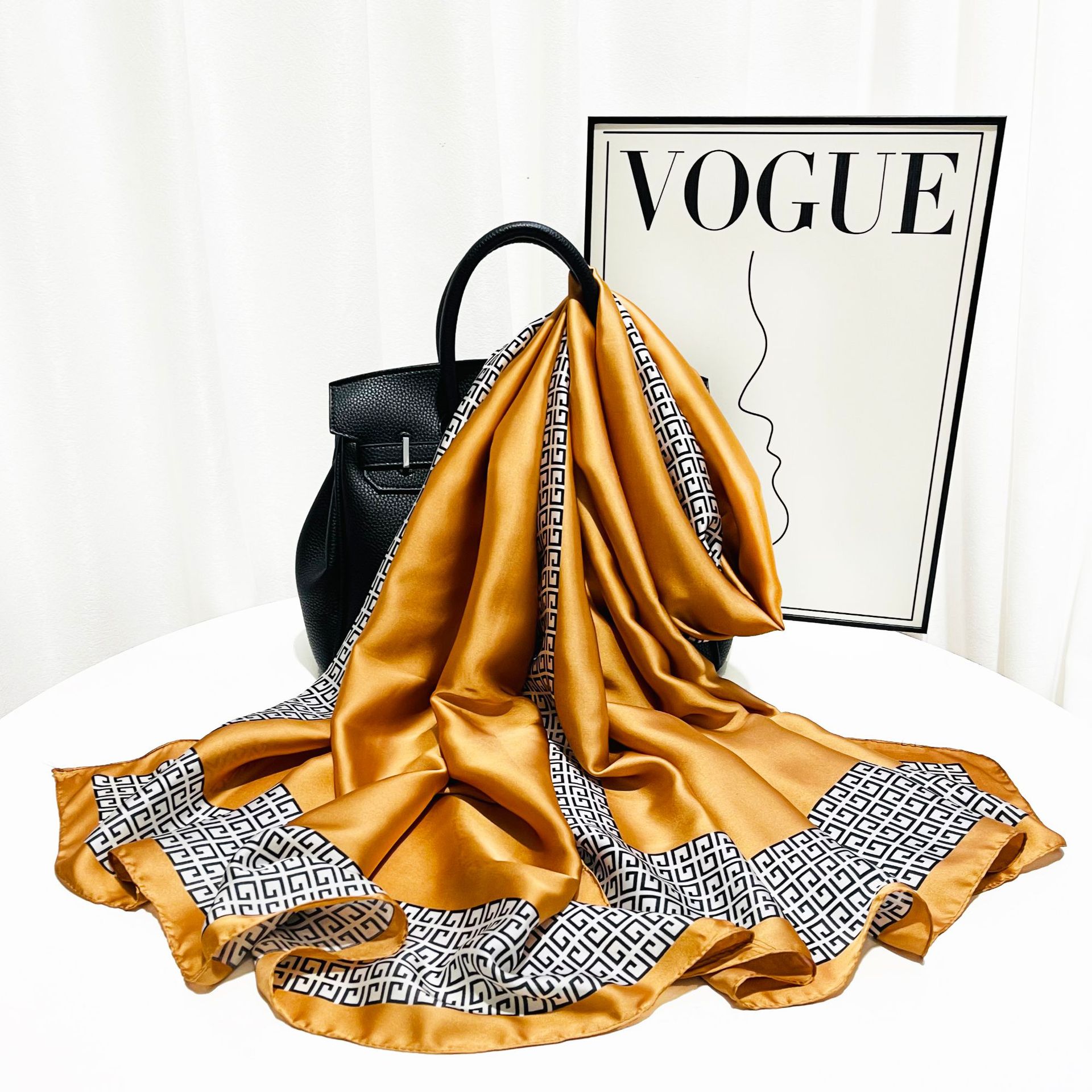 간단한 한국 스타일 새로운 실크 새틴 롱 실크 스카프 우아한 여성의 사무실 에어컨 숄 여행 비치 타올