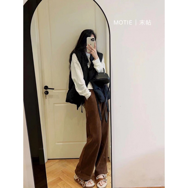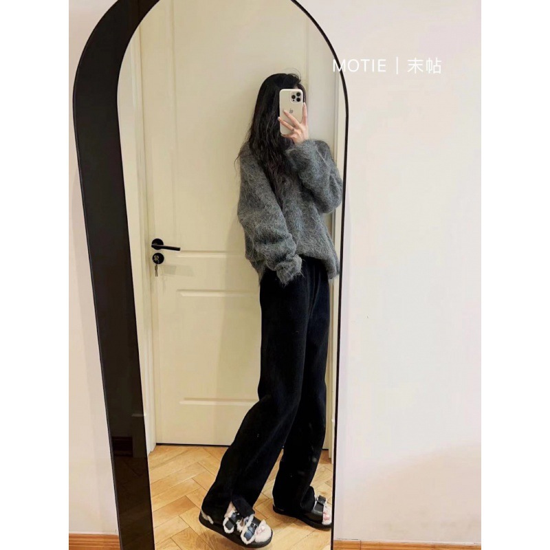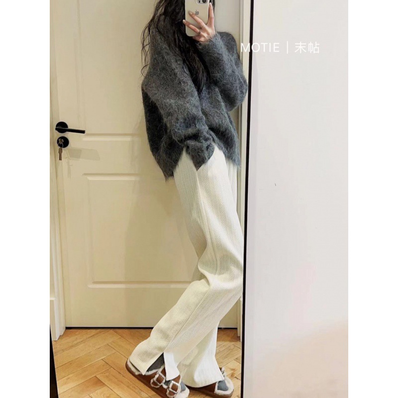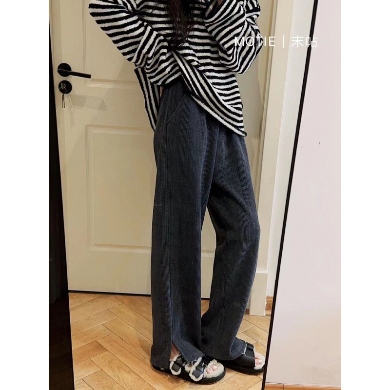 MOTIE 밀 이어 스플릿 와이드 레그 팬츠 베이비 벨벳 하이 웨이스트 슬림핏 스트레이트 기모 캐주얼 팬츠스토어 가기