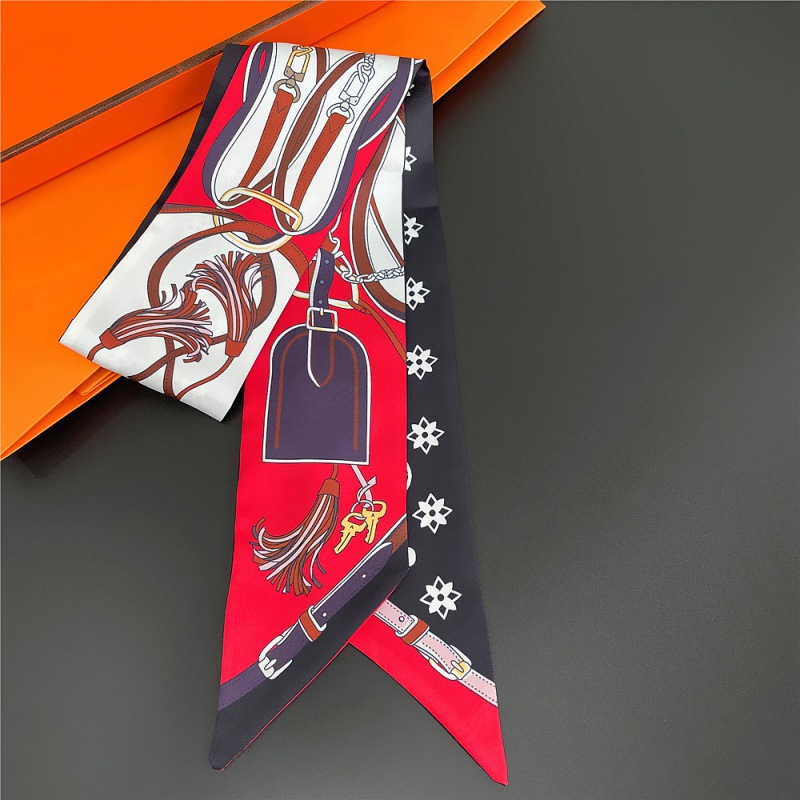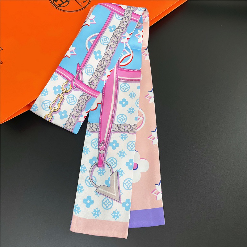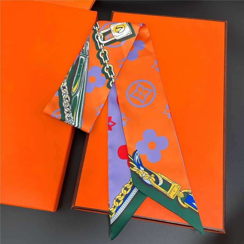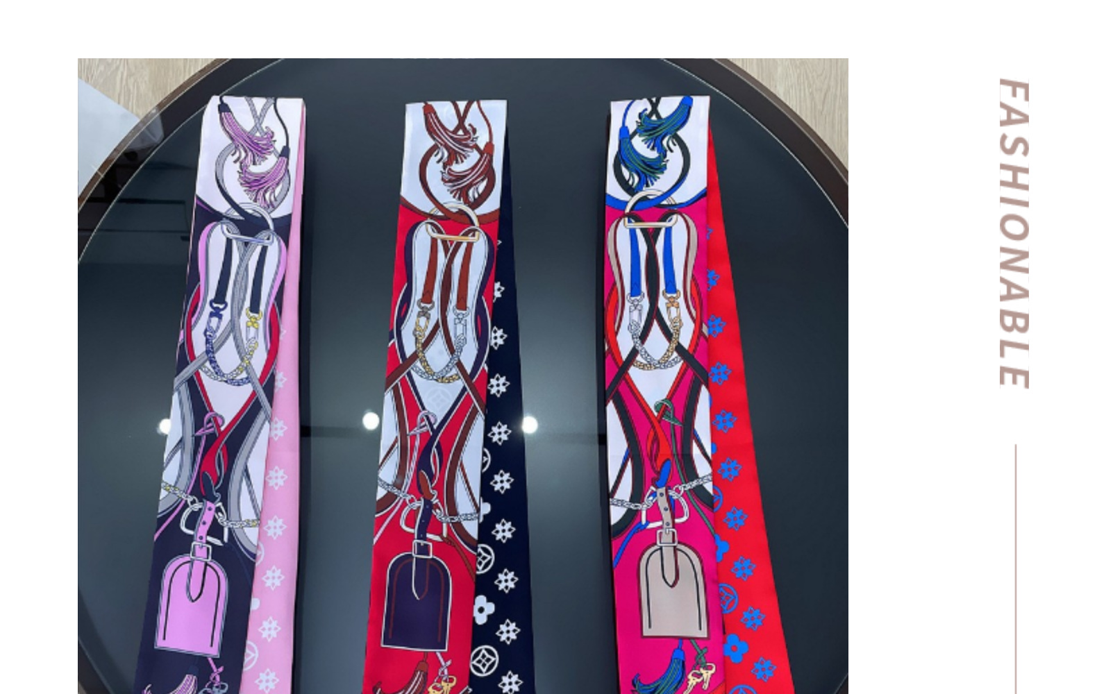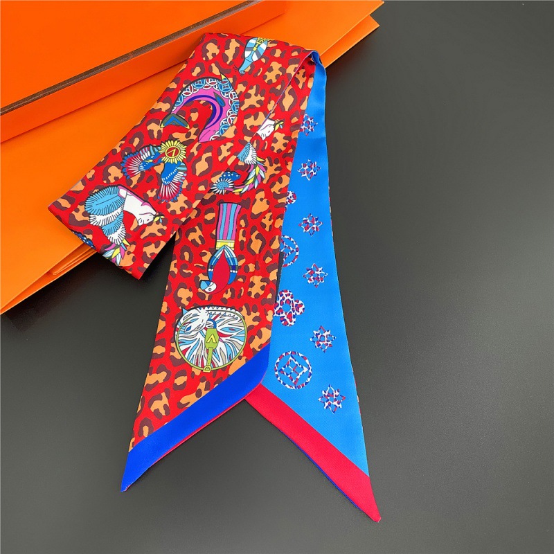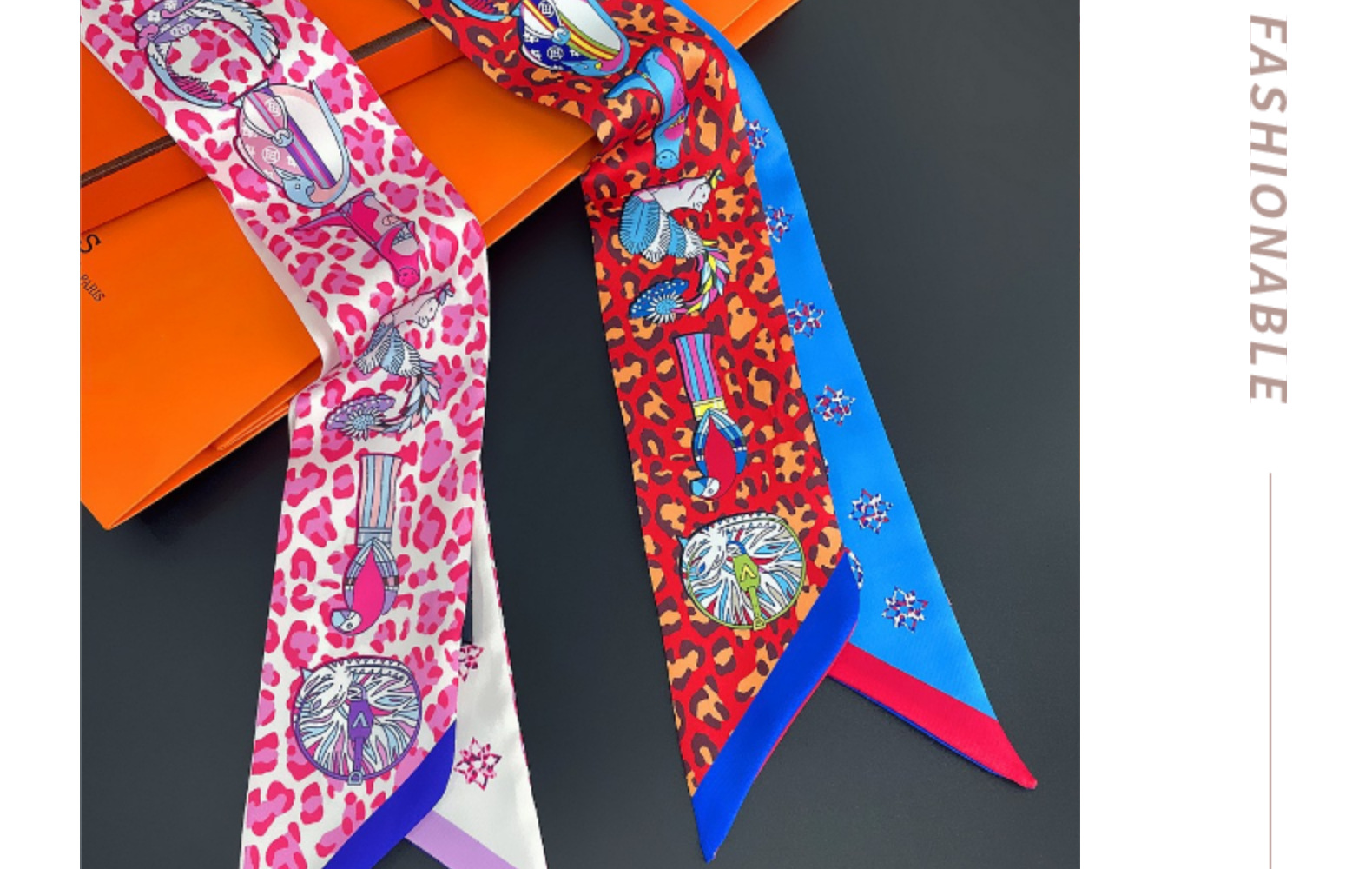 봄과 여름 새로운 한국식 양면 인쇄 작은 실크 스카프 넥타이 핸드백 여성용 헤어 벨트 작은 스카프 핸드 세레머니 더블 레이어 실크 스카프