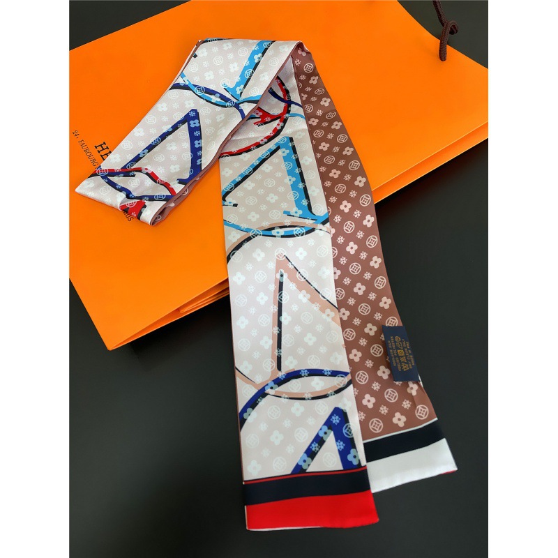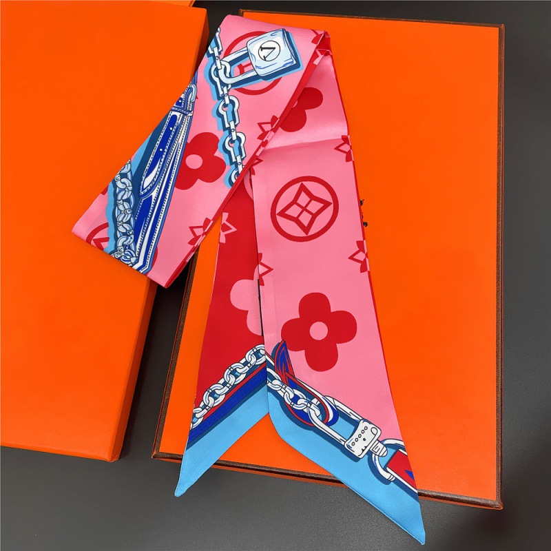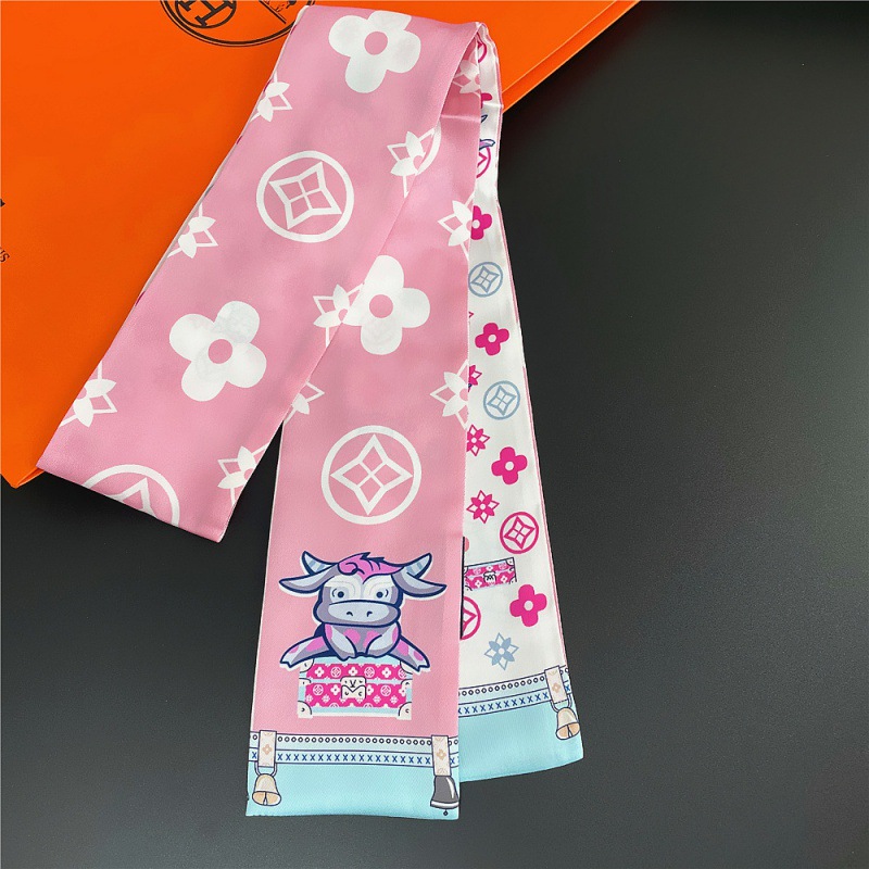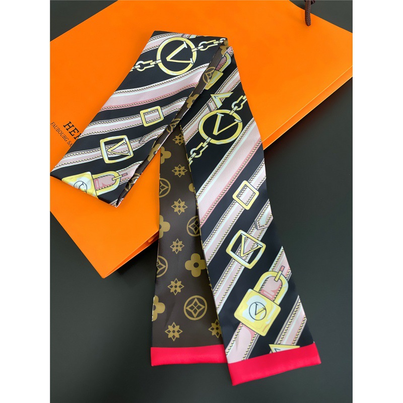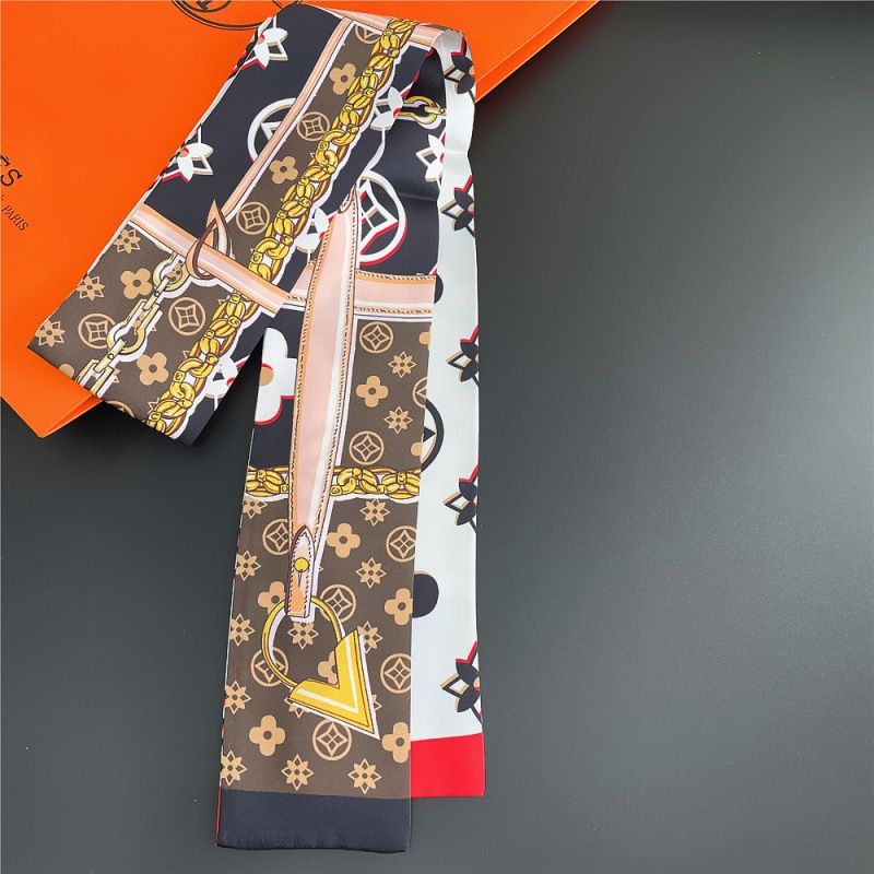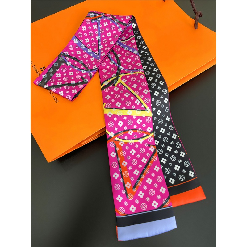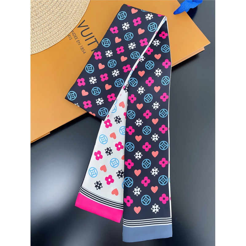 봄과 여름 새로운 한국식 양면 인쇄 작은 실크 스카프 넥타이 핸드백 여성용 헤어 벨트 작은 스카프 핸드 세레머니 더블 레이어 실크 스카프