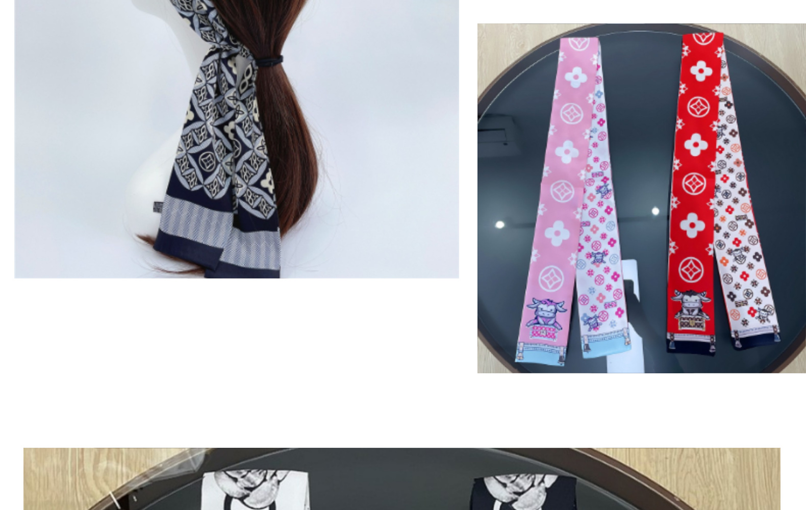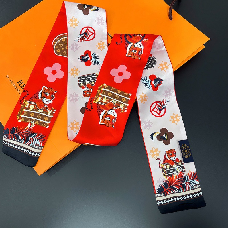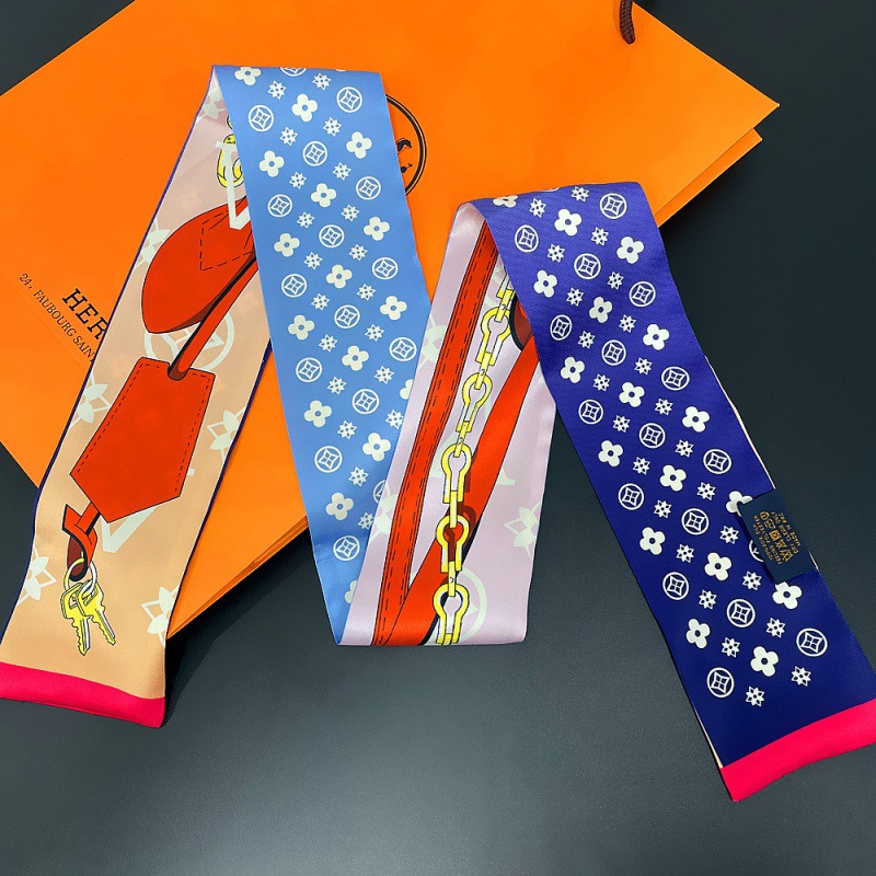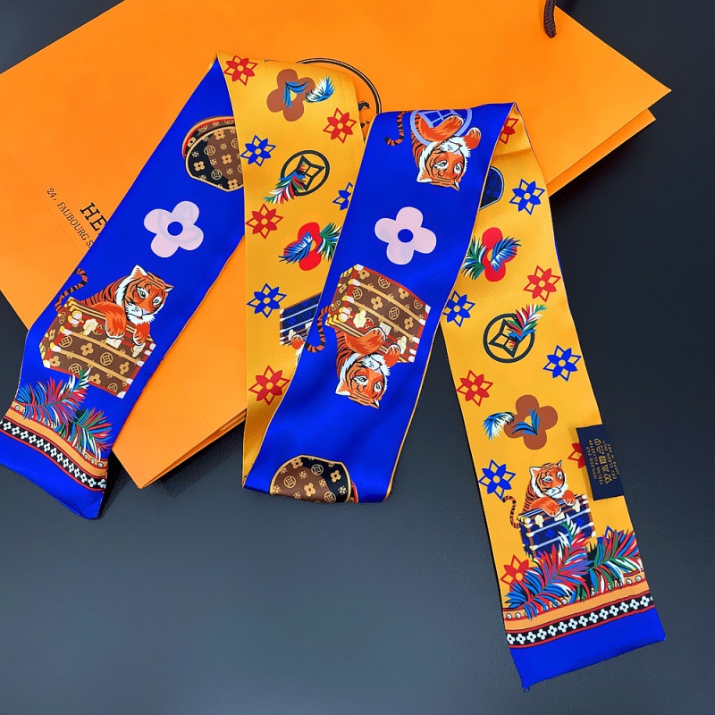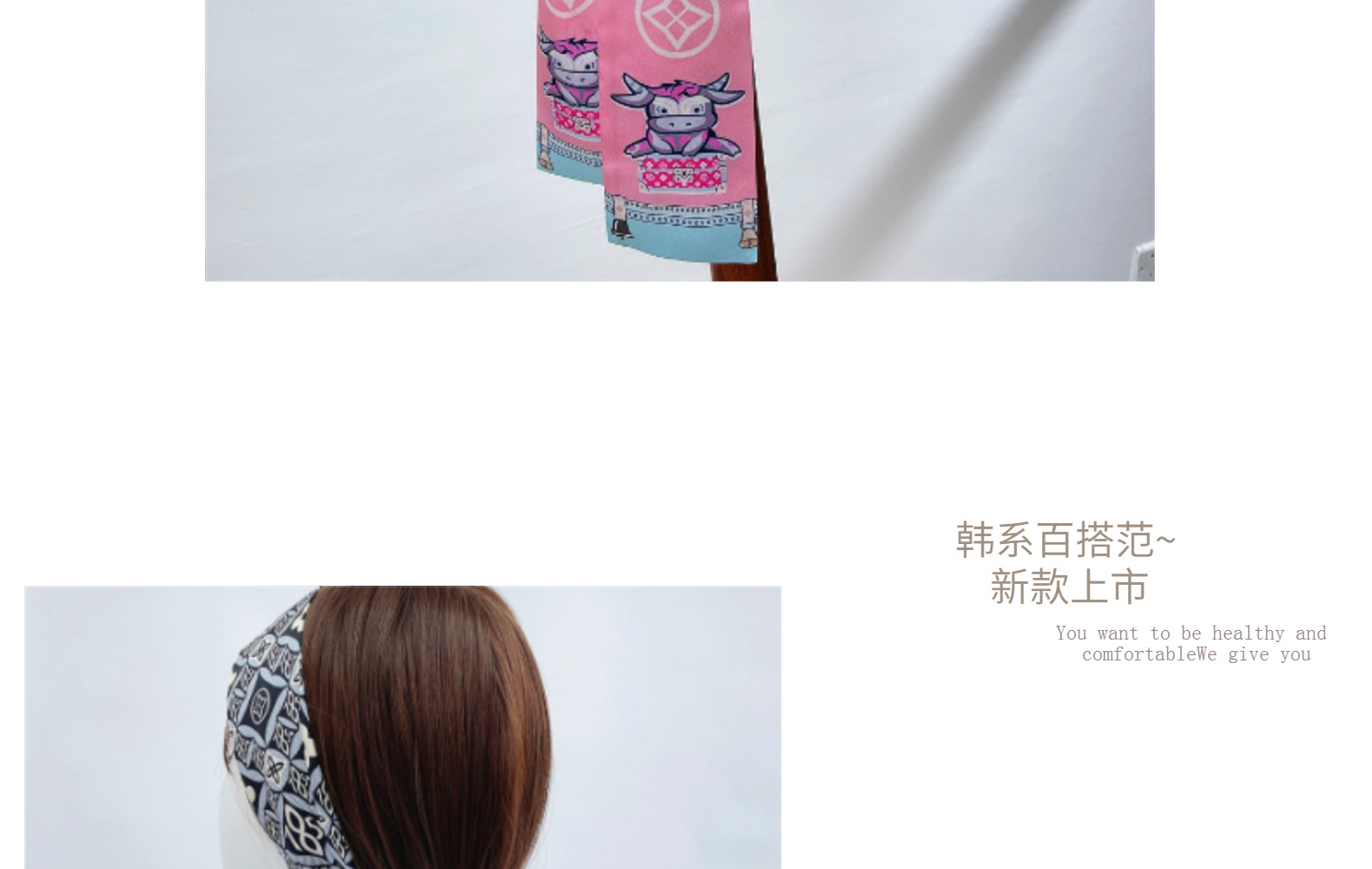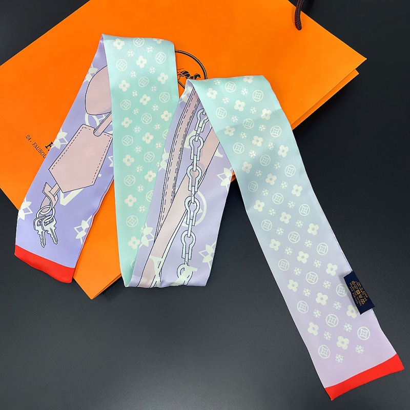 봄과 여름 새로운 한국식 양면 인쇄 작은 실크 스카프 넥타이 핸드백 여성용 헤어 벨트 작은 스카프 핸드 세레머니 더블 레이어 실크 스카프