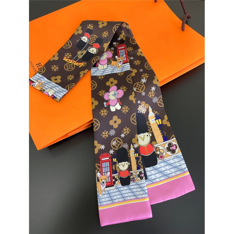 봄과 여름 새로운 한국식 양면 인쇄 작은 실크 스카프 넥타이 핸드백 여성용 헤어 벨트 작은 스카프 핸드 세레머니 더블 레이어 실크 스카프스토어 가기