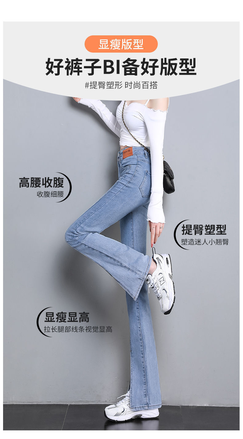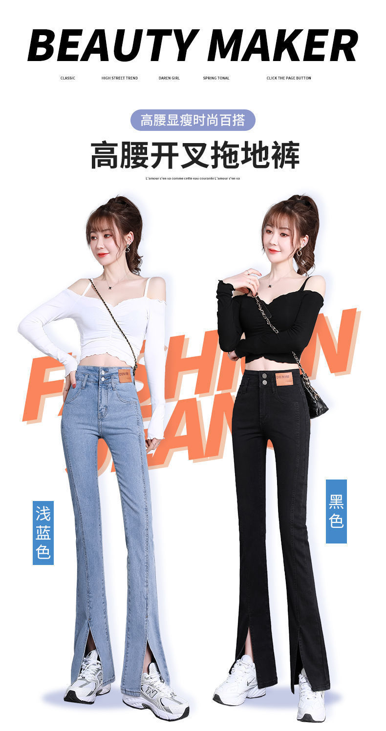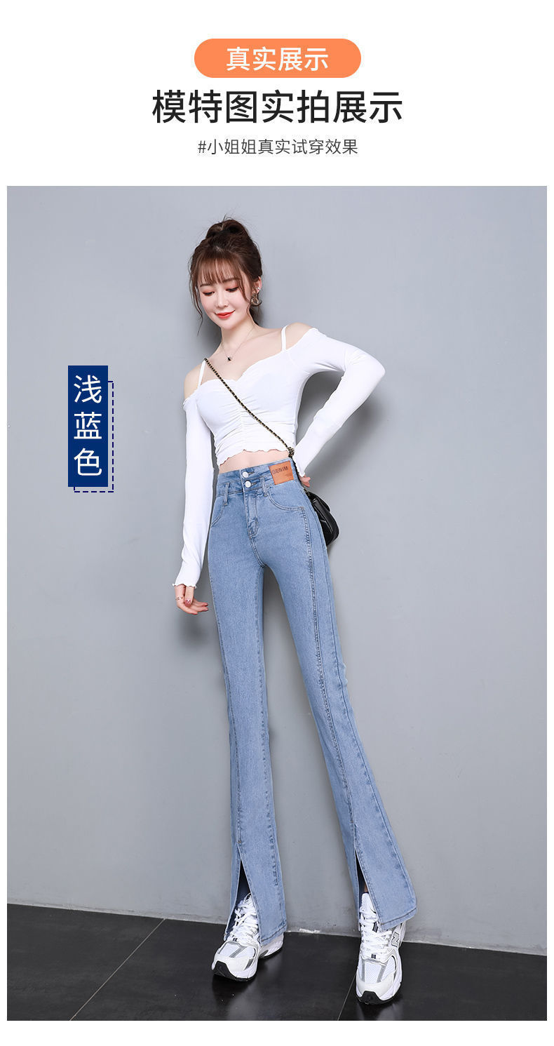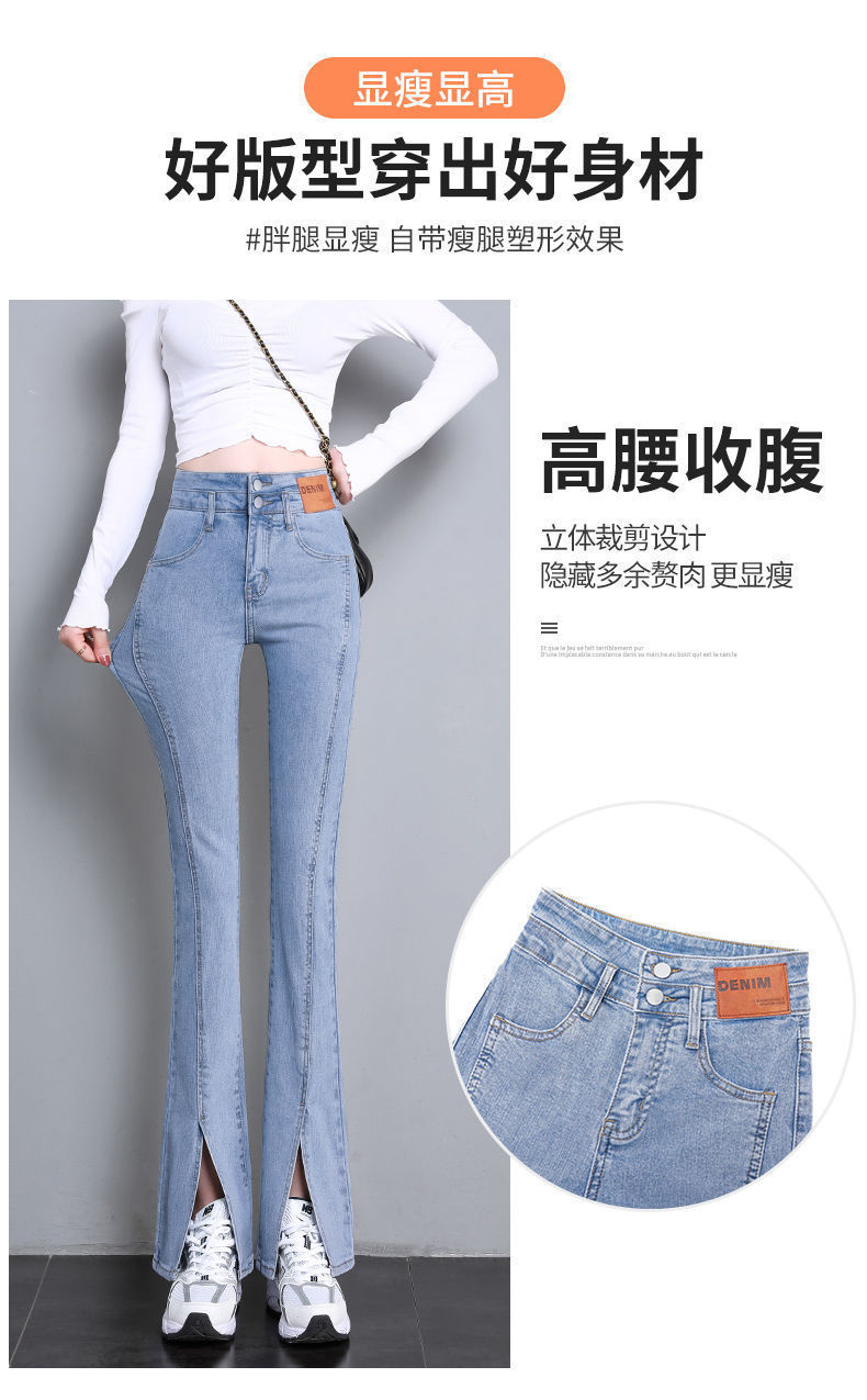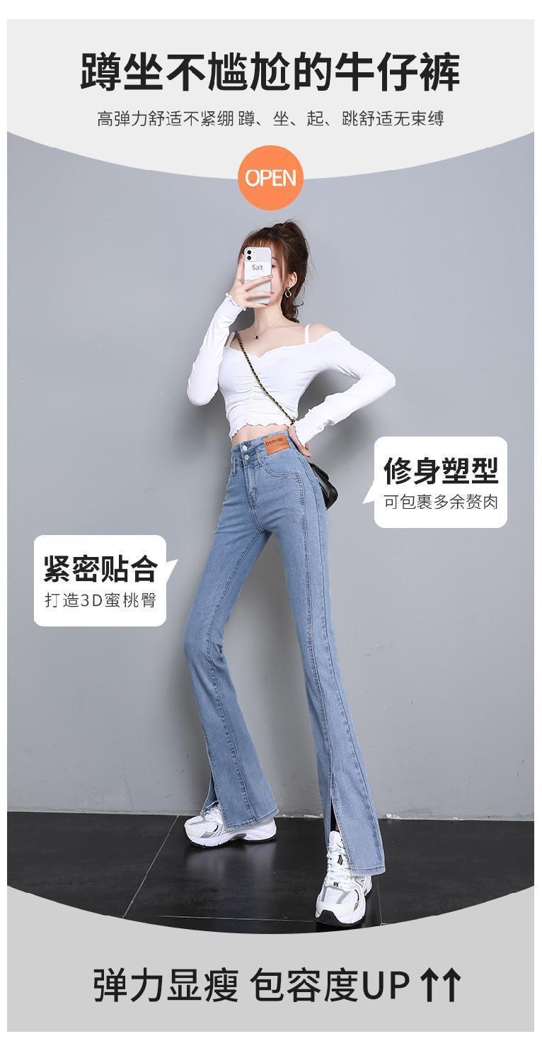 라이트 컬러 하이 웨이스트 마이크로 플레어 진 여성용 2023 가을 겨울 새로운 모든 매치 슬림 룩 스플릿 트렌디 플로어 팬츠스토어 가기