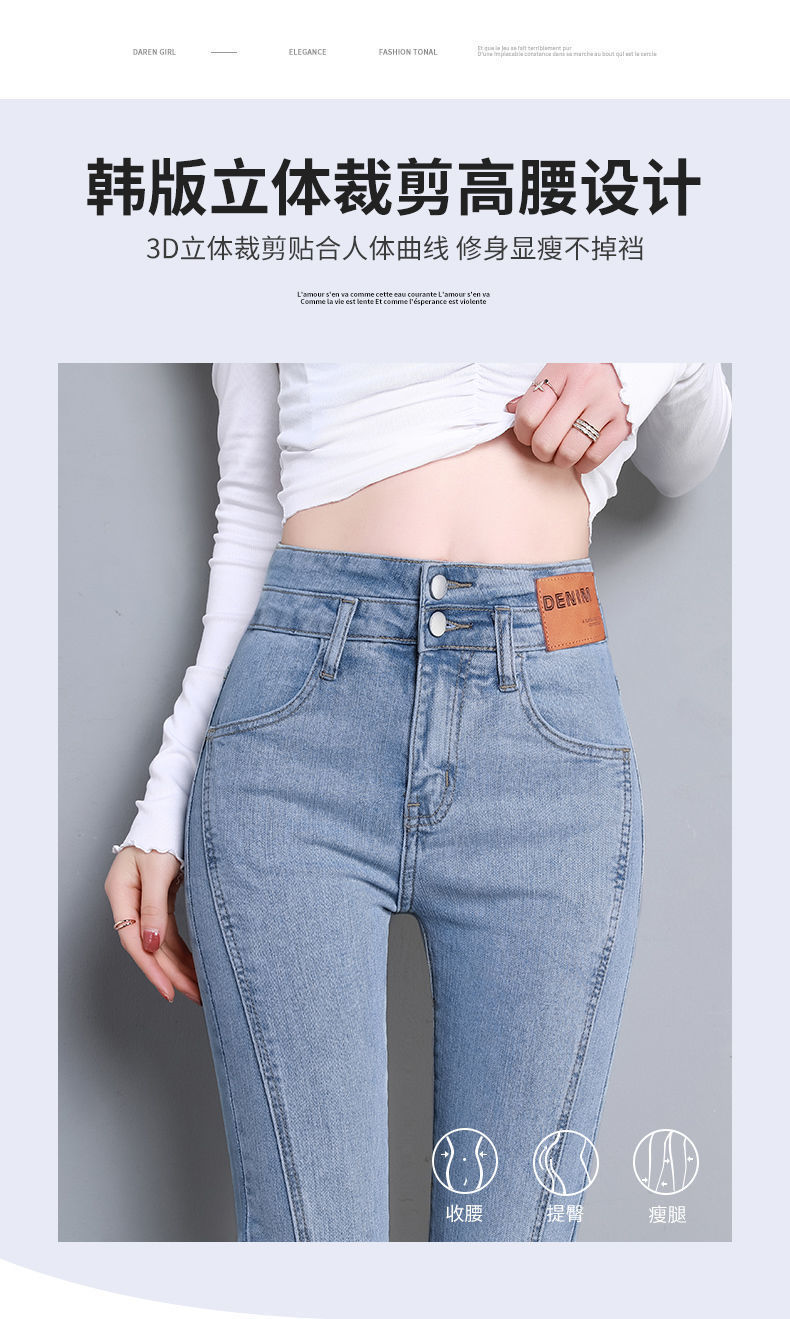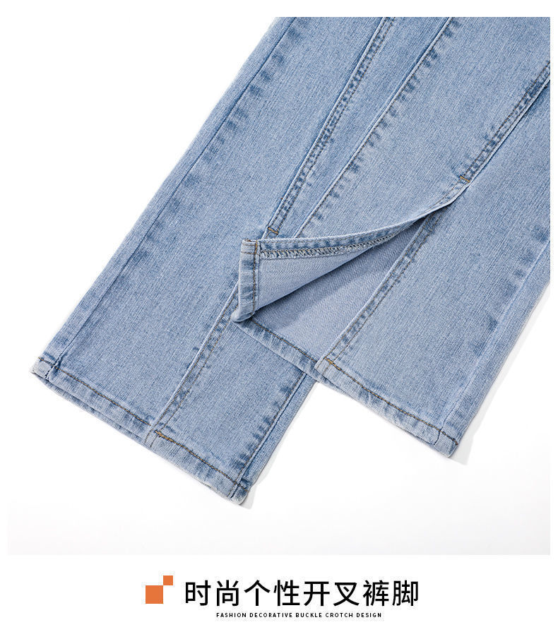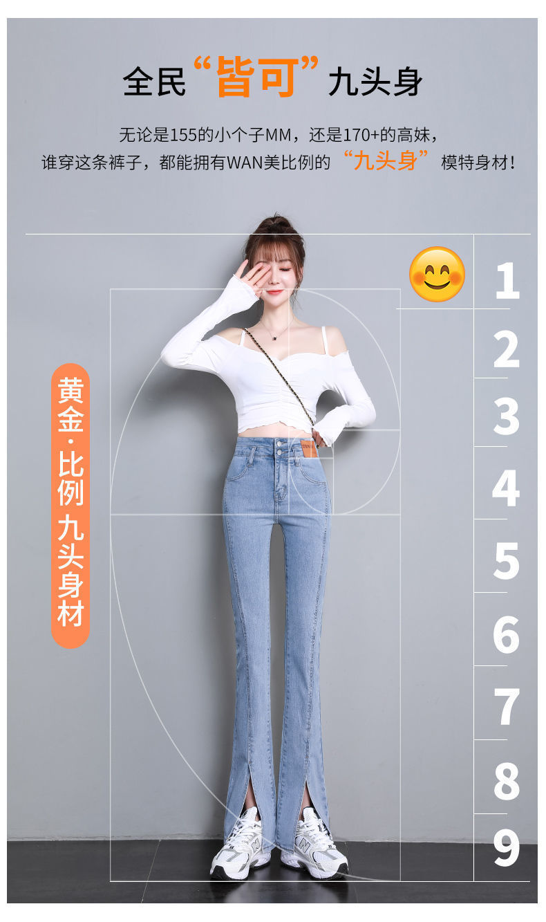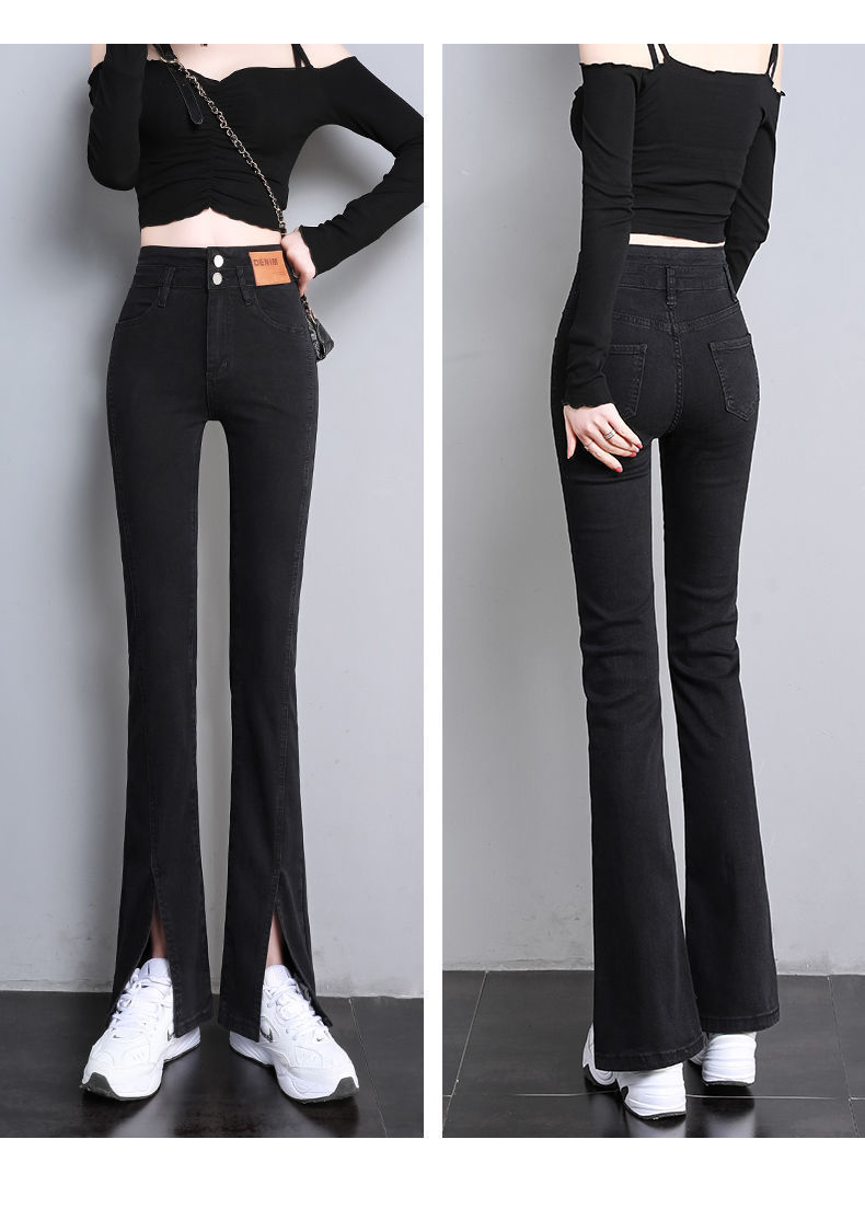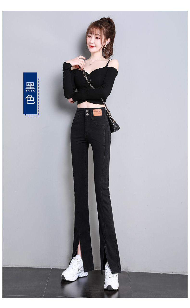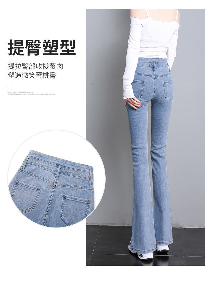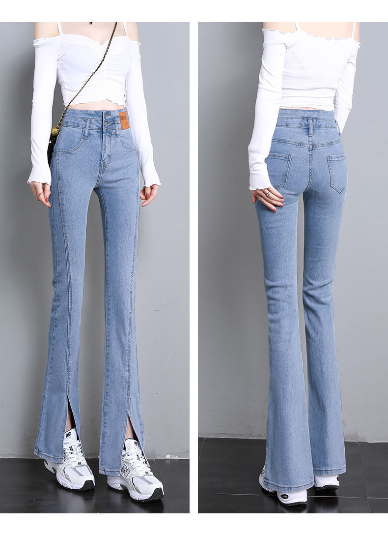 라이트 컬러 하이 웨이스트 마이크로 플레어 진 여성용 2023 가을 겨울 새로운 모든 매치 슬림 룩 스플릿 트렌디 플로어 팬츠스토어 가기