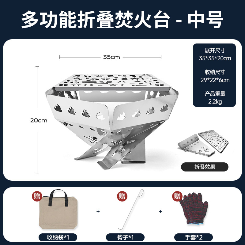 불타는 테이블 야외 바베큐 그릴 캠핑 난방 나무 스토브 휴대용 접이식 숯 그릴 모닥불 그릴