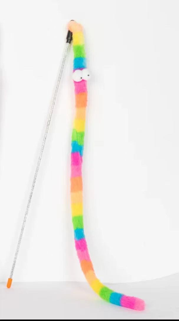 공장 직접 애완 동물 장난감 큰 눈 레인보우 애벌레 고양이 스틱 지루함을 덜어주는 부드러운 플란넬 셀프 안녕 고양이 스틱