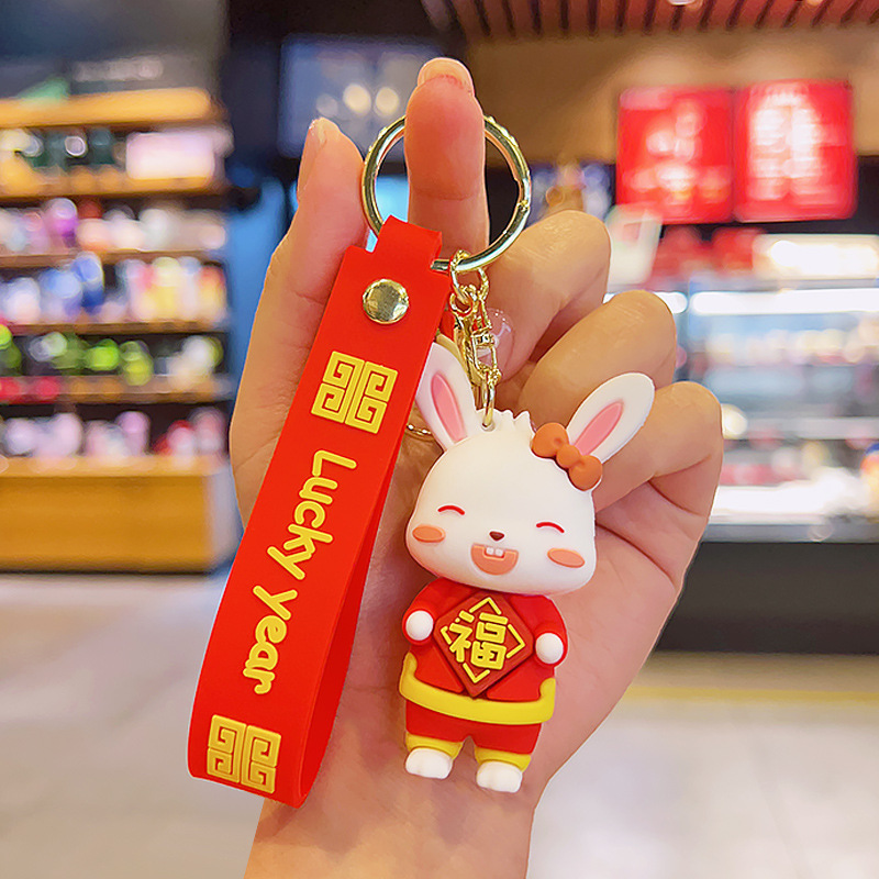 2023 년 토끼 열쇠 고리 도매 만화 커플 가방 펜던트 토끼 자동차 열쇠 고리 창조 활동 선물스토어 가기