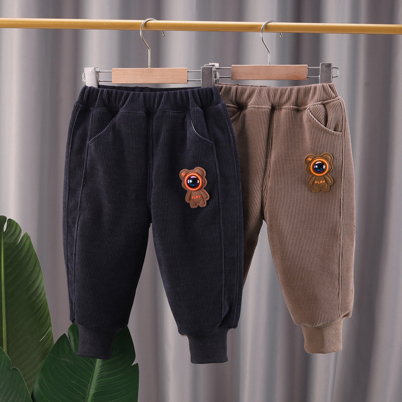 두꺼운 3 층 어린이 면 바지 겨울 아기 바지 겨울 기모 빛나는 우주 비행사