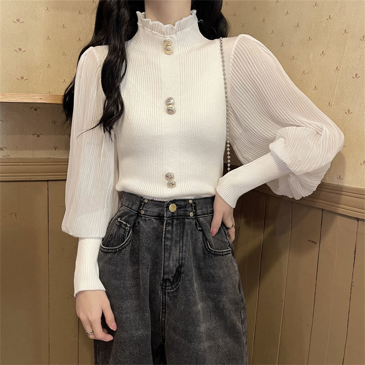 2024년 초봄 슬림핏 베이직 니트, 다용도 하프넥 니트 여성복, 슬림핏 디자인의 우아한 긴팔 상의스토어 가기