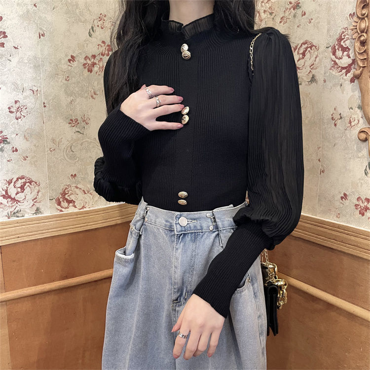 2024년 초봄 슬림핏 베이직 니트, 다용도 하프넥 니트 여성복, 슬림핏 디자인의 우아한 긴팔 상의
