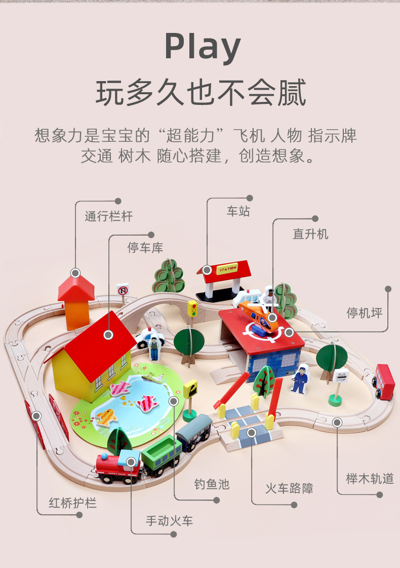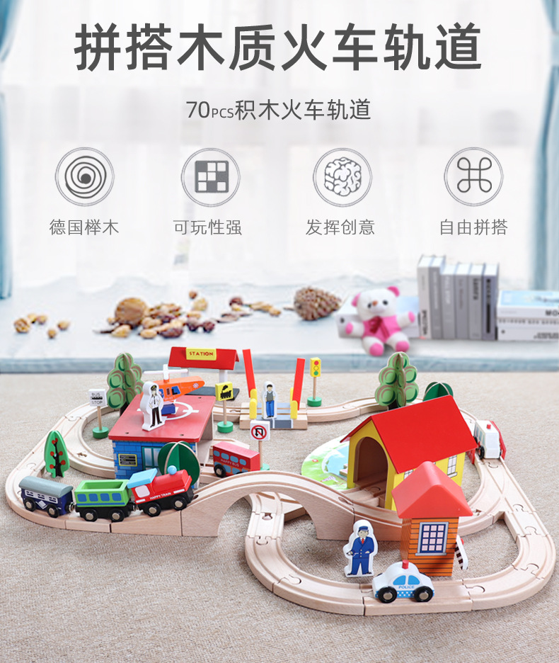어린이 70p 나무 작은 기차 트랙 장난감 세트 자기 퍼즐 빌딩 블록 조립 너도밤 나무 트랙 기차스토어 가기