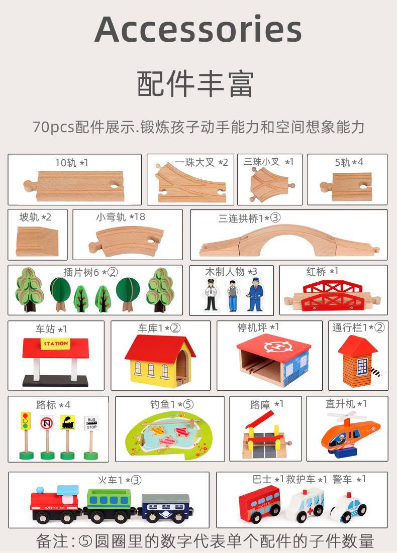 어린이 70p 나무 작은 기차 트랙 장난감 세트 자기 퍼즐 빌딩 블록 조립 너도밤 나무 트랙 기차