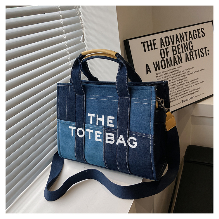 여성용 가방 2025 국경 새 스타일 수 놓은 편지 휴대용 크로스 바디 백 데님 블루 레트로 스티치 토트 백