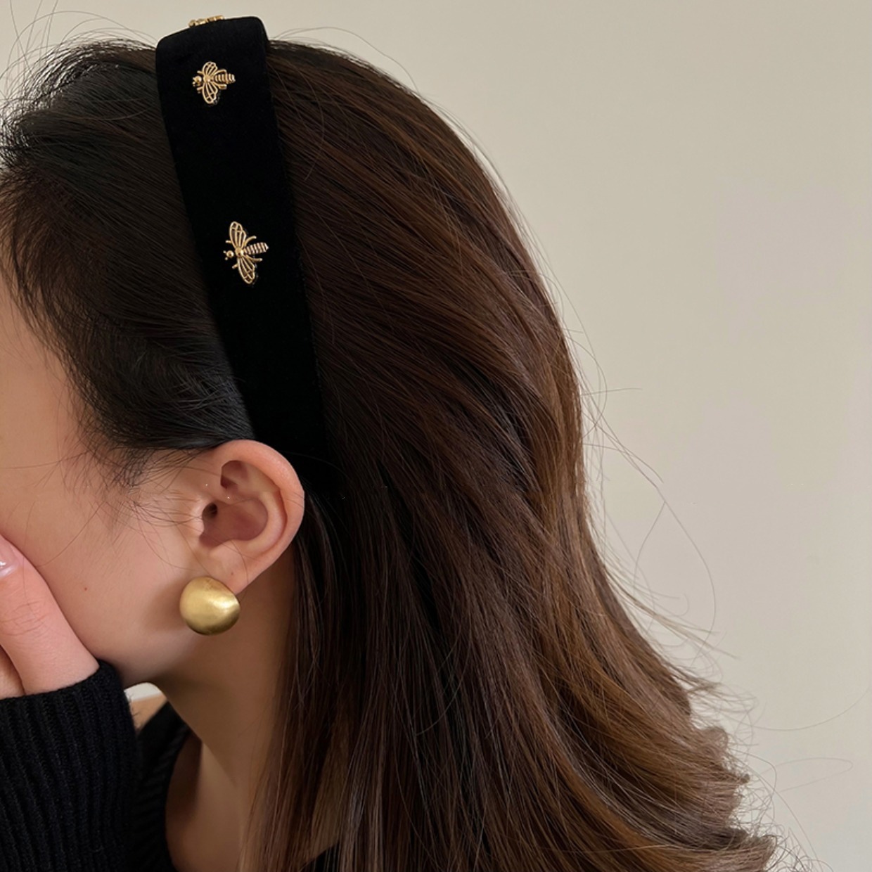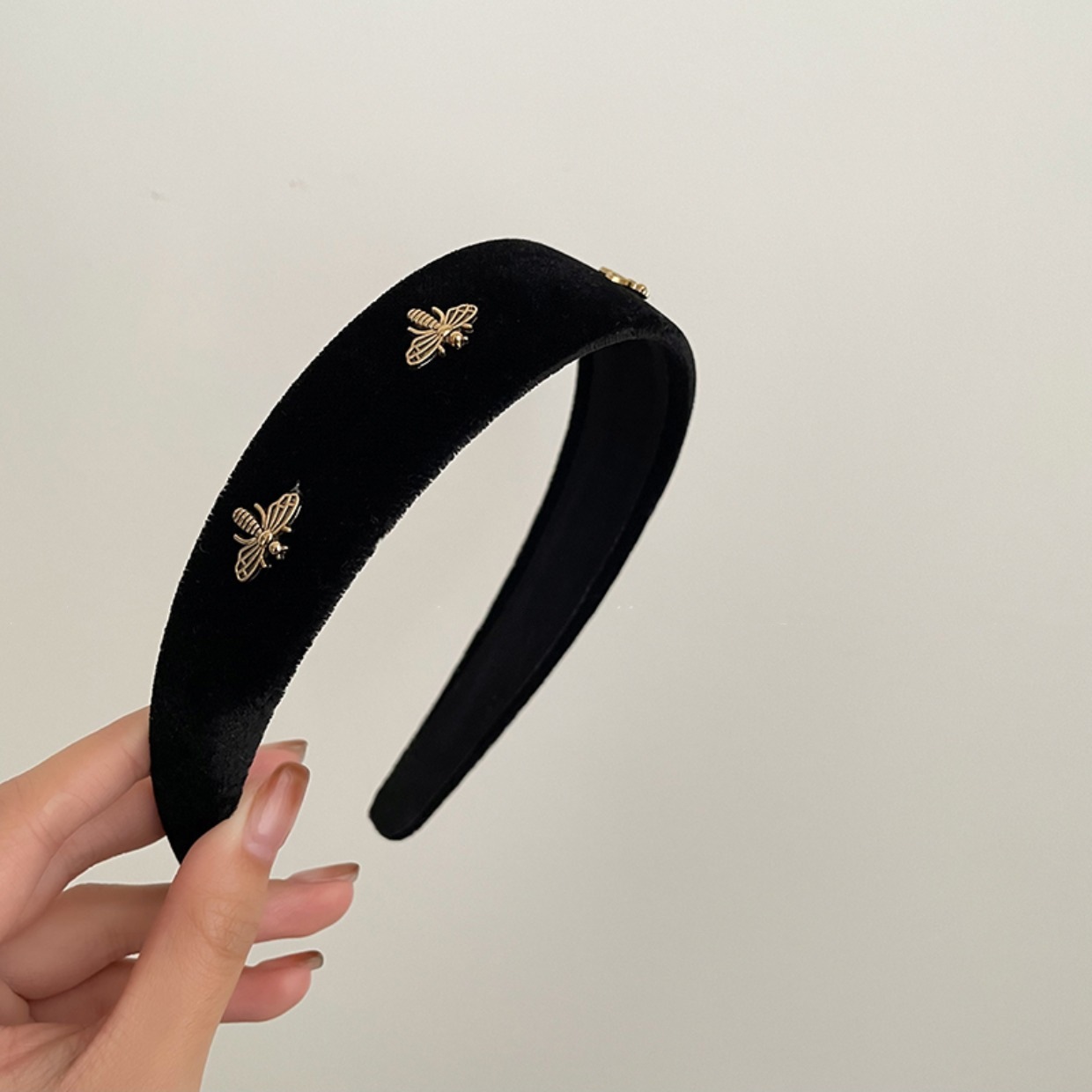 벨벳 리틀 꿀벌 패브릭 페이스 워시 헤어 후프 여성용 가을과 겨울 봉제 하이 두개골 탑 헤드 후프 압력 헤어 나가는 머리핀 헤어 액세서리
