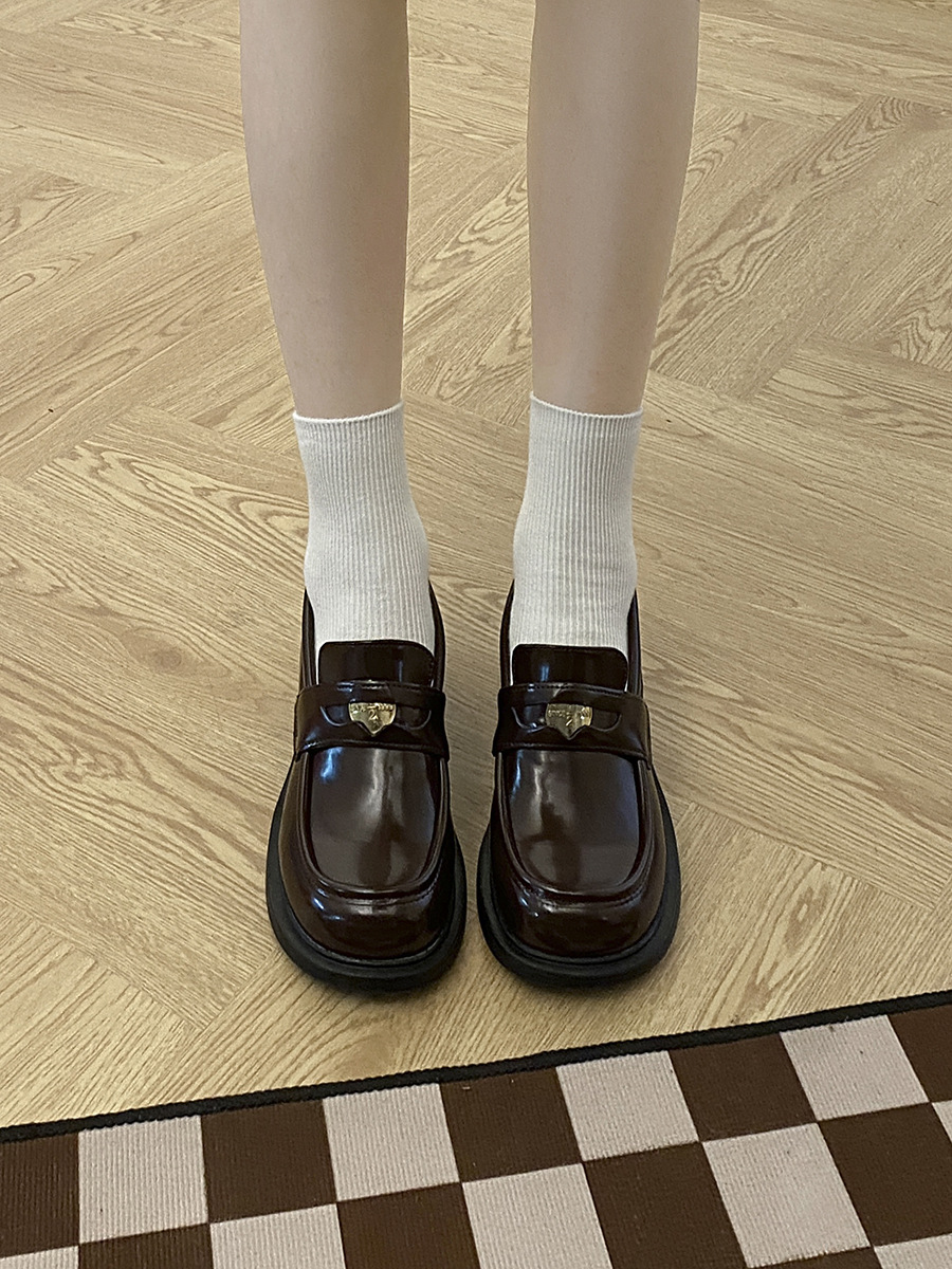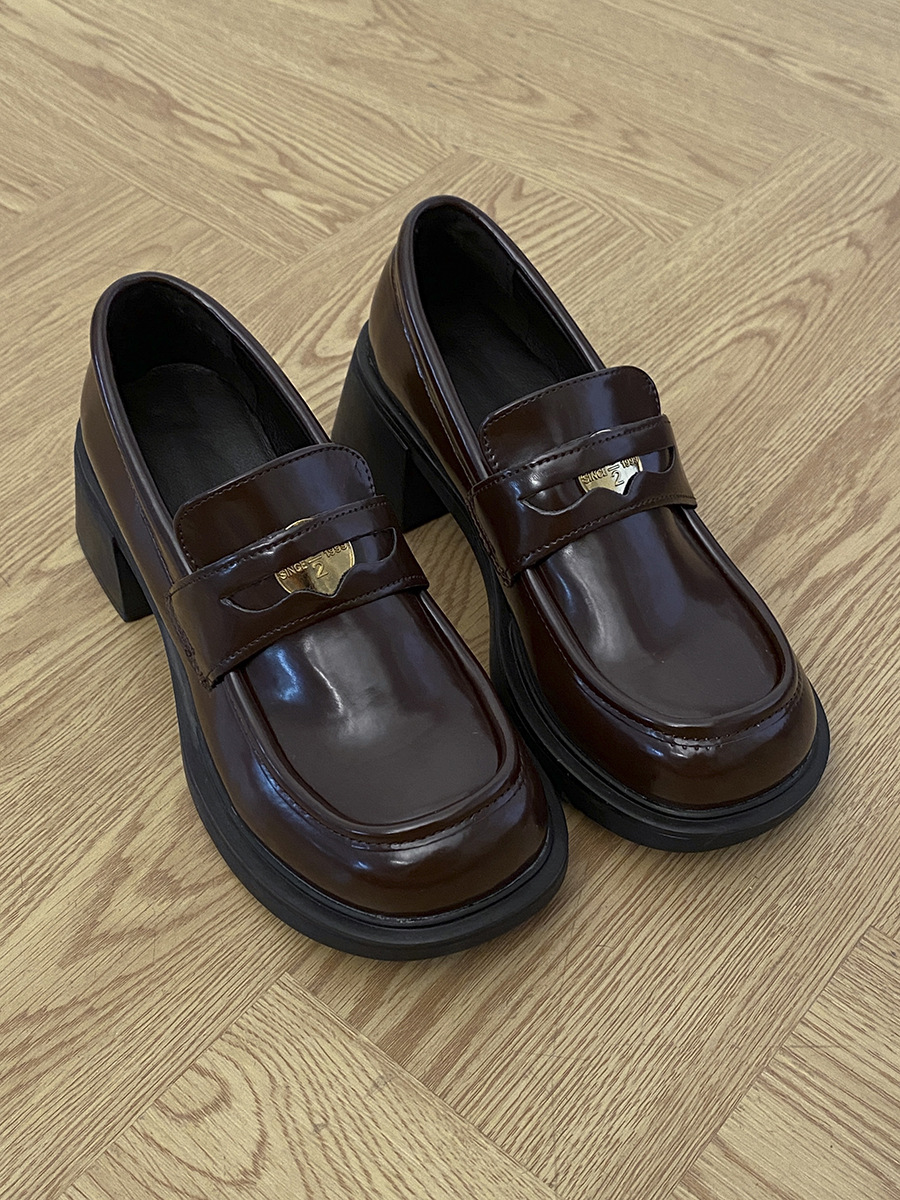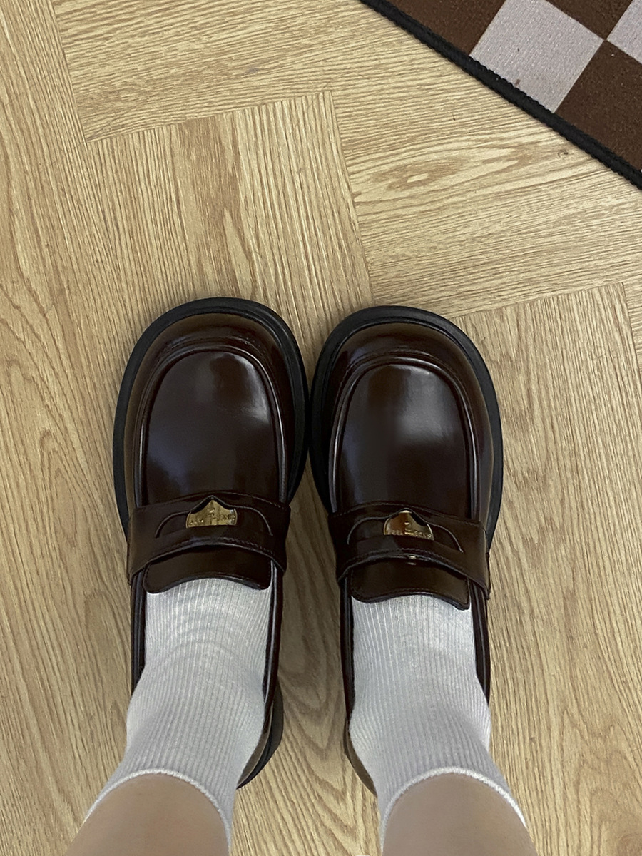 여왕풍 프렌치 로퍼 여성용 2025 신상 가을 겨울 브라운 키높이 굽 높은 영국풍 가죽 신발스토어 가기