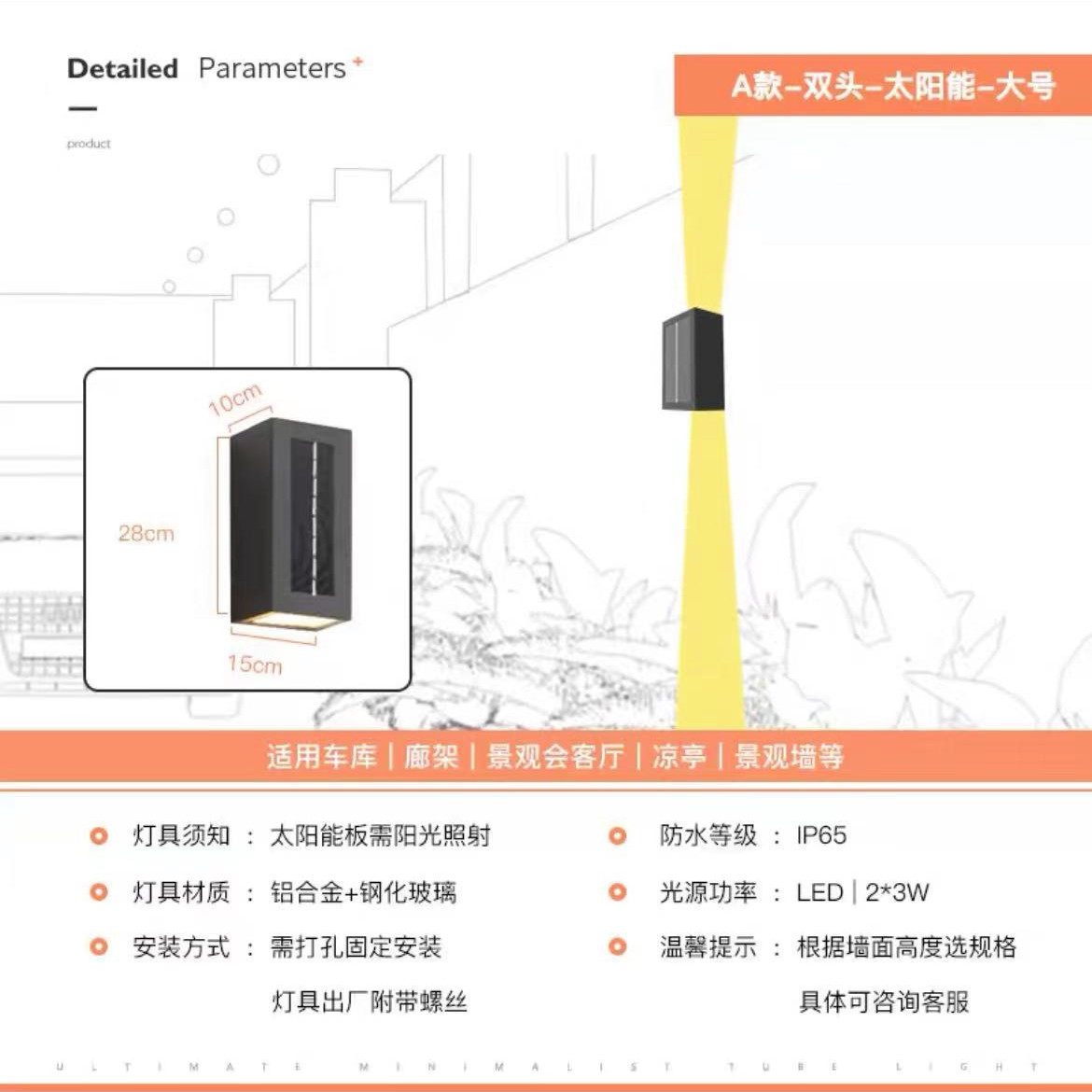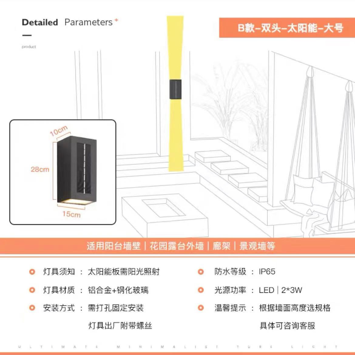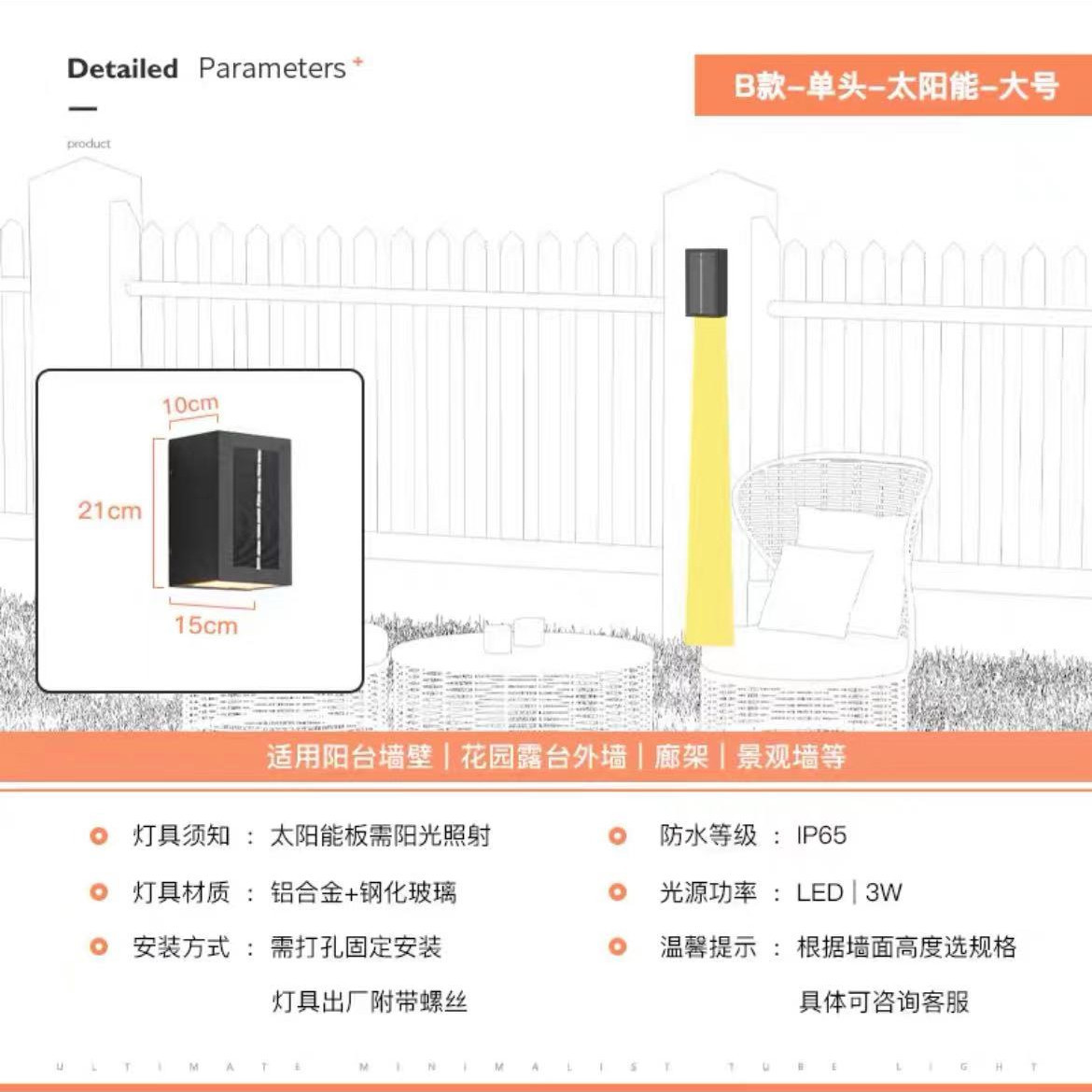 태양 벽 램프 야외 벽 세척기 램프 방수 정원 램프 빌라 외벽 램프 야외 테라스 정원 벽 램프