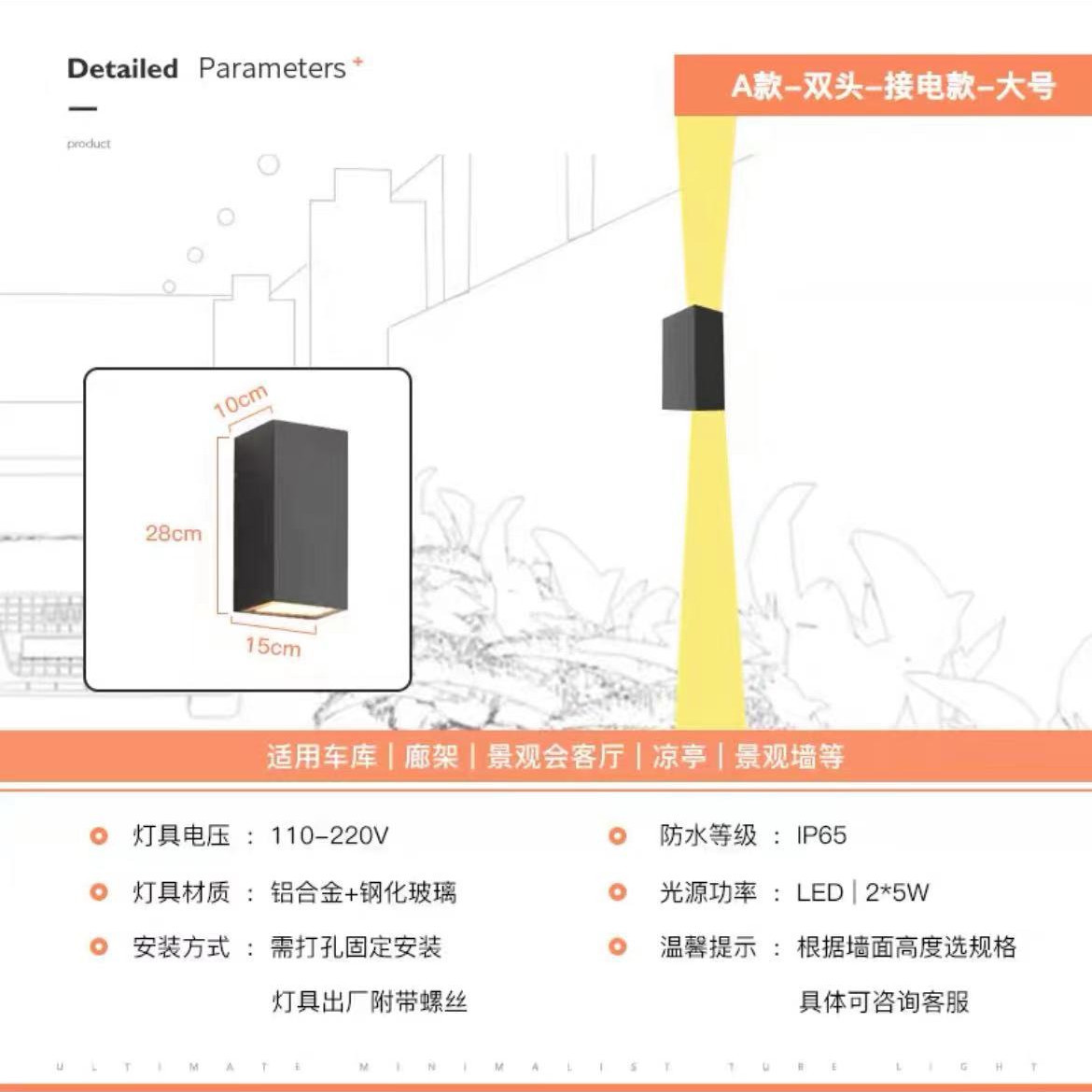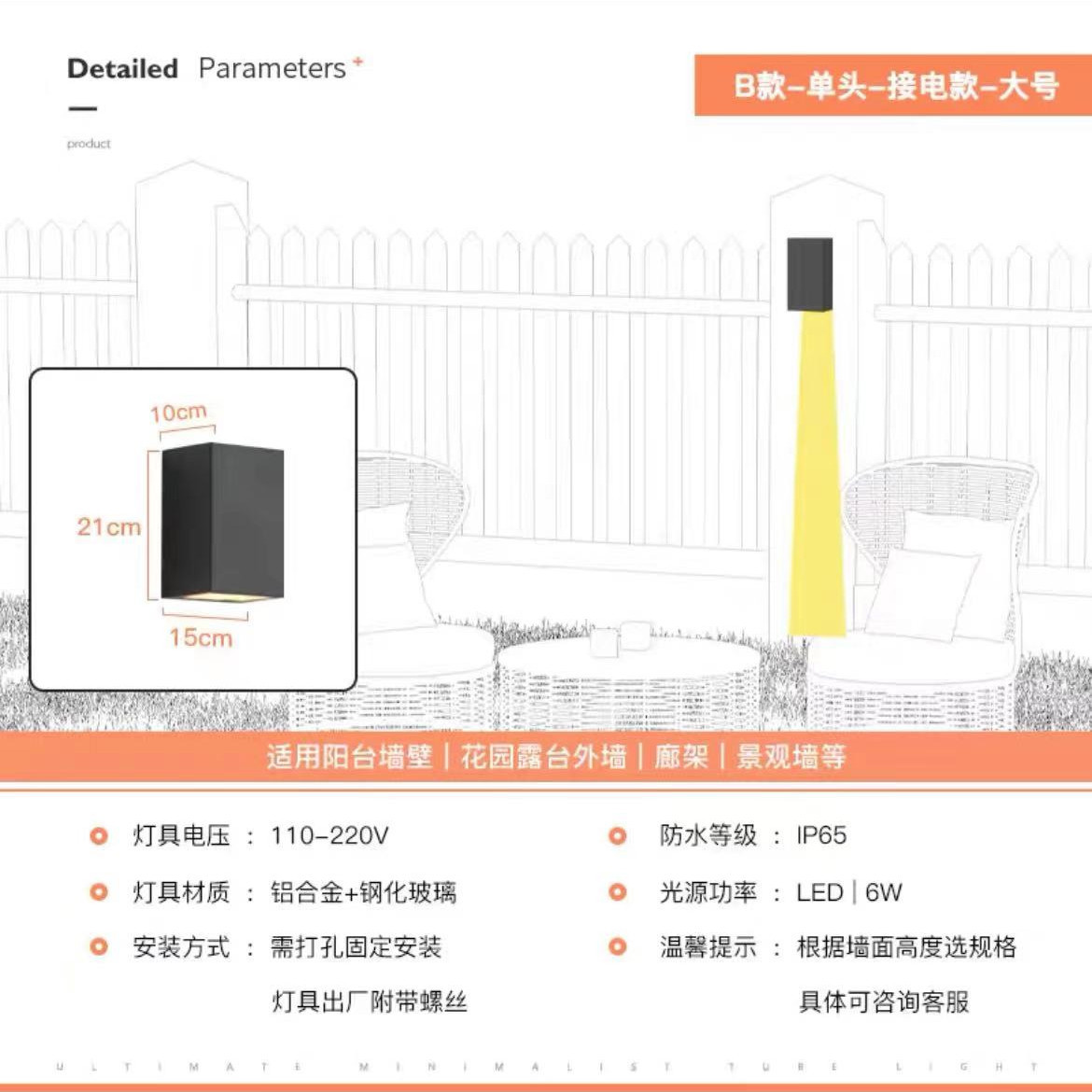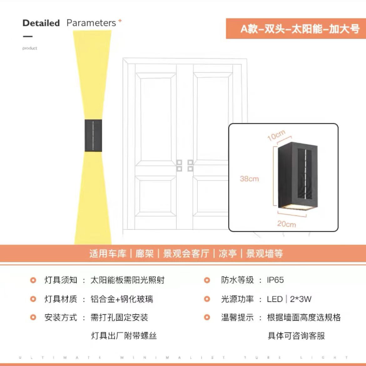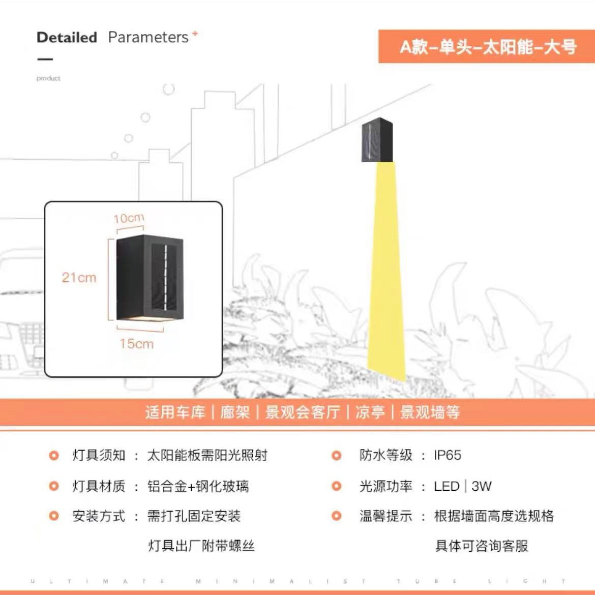 태양 벽 램프 야외 벽 세척기 램프 방수 정원 램프 빌라 외벽 램프 야외 테라스 정원 벽 램프