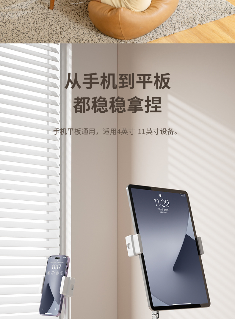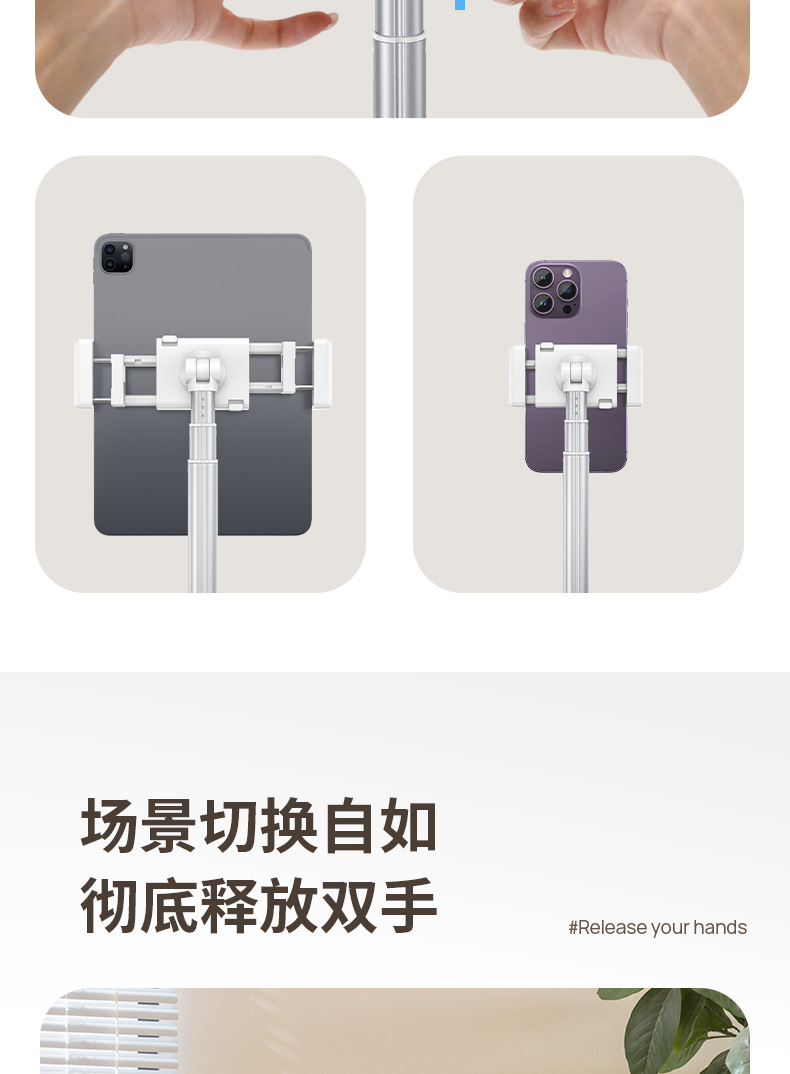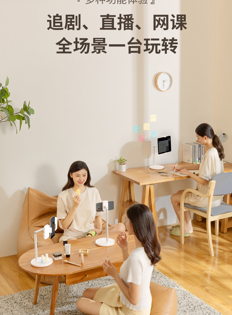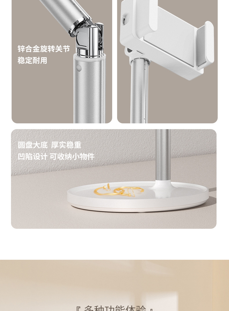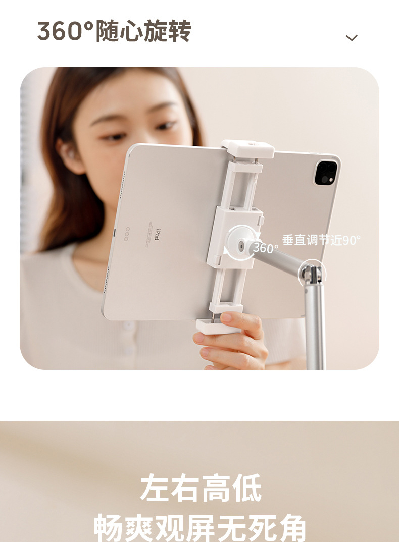 휴대폰 데스크탑 라이브 방송 스탠드, 높이 조절 가능, 게으른 사람들을 위한 패드/태블릿용 휴대용 다기능 라이브 방송 도구