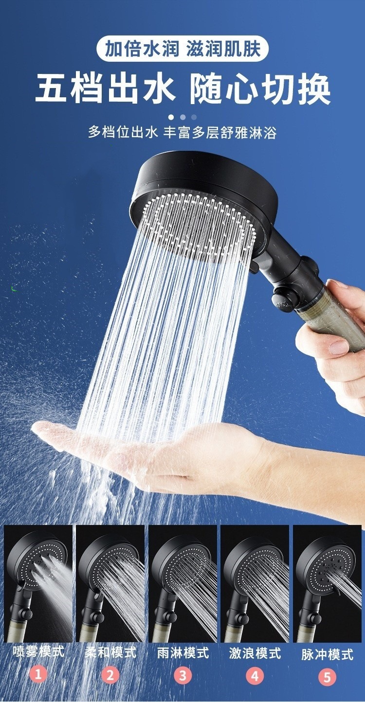 5단 가압식 워터 스프레이 샤워 필터 노즐, 가정용 욕실 온수기 샤워 호스, 범용 샤워 헤드