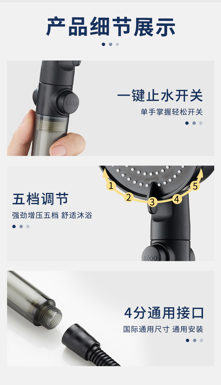 5단 가압식 워터 스프레이 샤워 필터 노즐, 가정용 욕실 온수기 샤워 호스, 범용 샤워 헤드스토어 가기