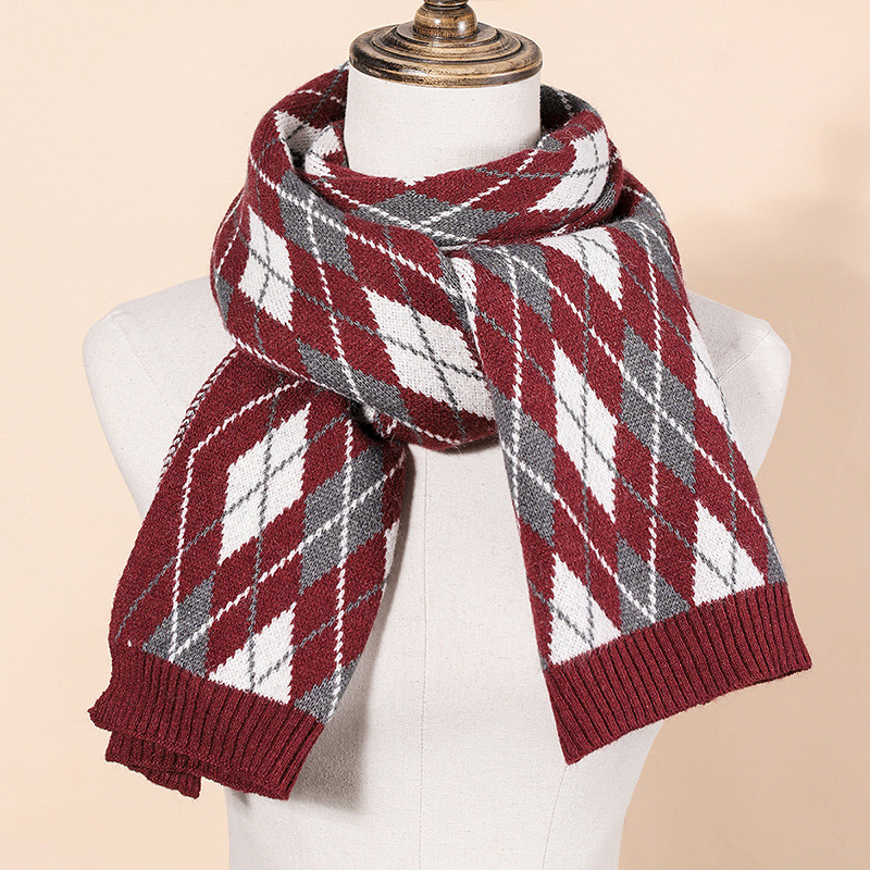 새해 빨간 격자 무늬 숄 겨울 니트 한국어 두꺼운 틈새 남자의 따뜻한 목 크리스마스 스카프 도매