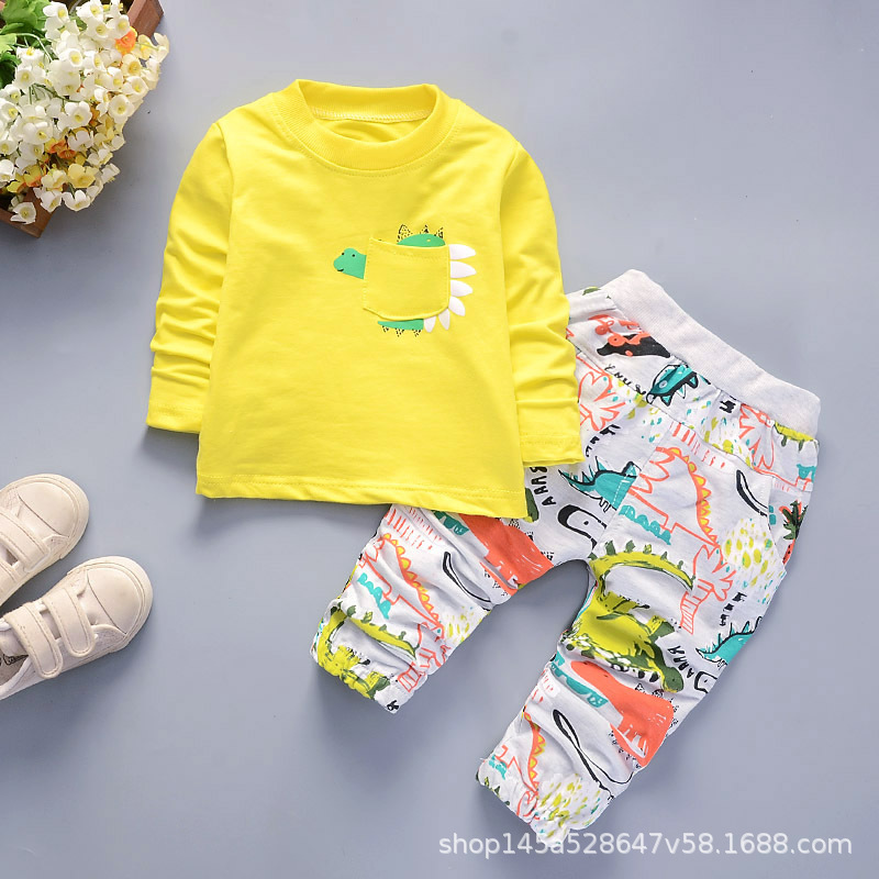 • QQH-긴 소매 공룡 쓰리 피스 옐로우