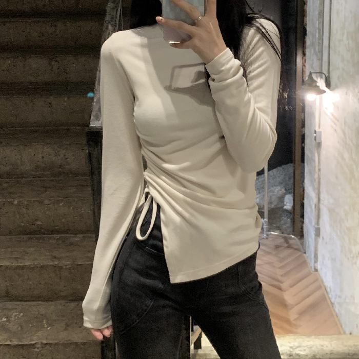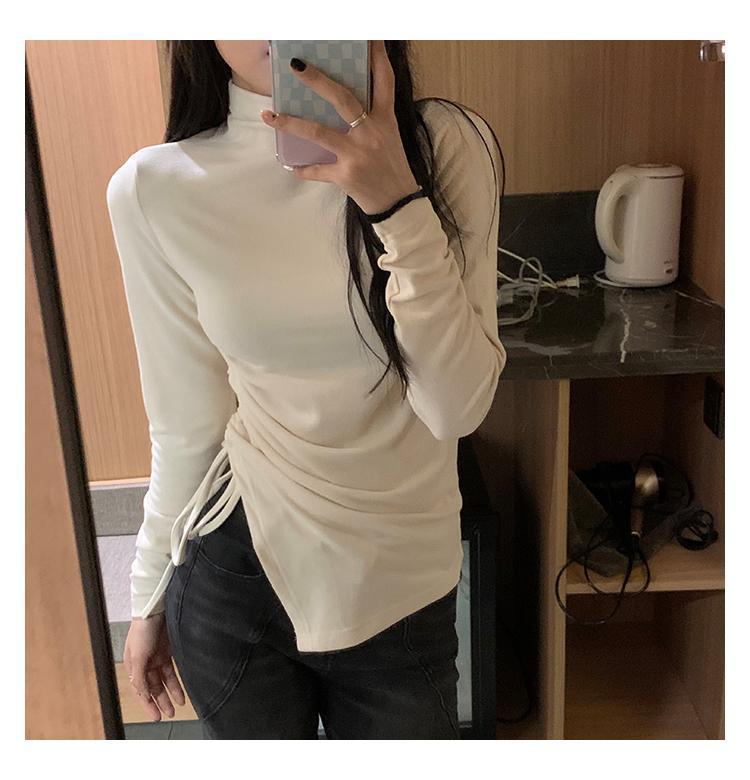 디자인 센스 작은 Zhongde 벨벳 하이 칼라 베이스 셔츠 여성의 가을과 겨울 내부 따뜻한 두꺼운 작은 셔츠 슬림핏 슬리밍 탑
