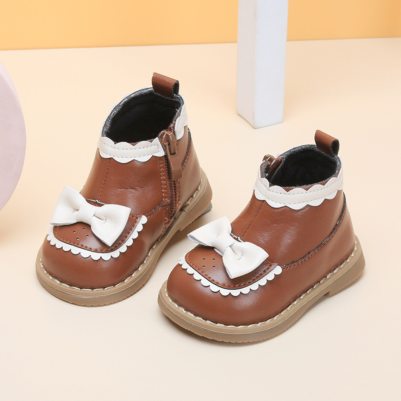 특가 아기 공주 가죽 신발 유아용 마틴 부츠 겨울용 플리스 안감 면화 신발 여아용 숏부츠 걸음마 신발스토어 가기