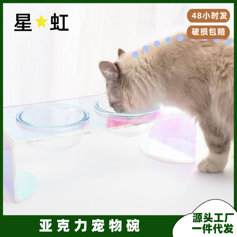 厂家批发宠物碗架 ins小红书宠物猫咪单双碗炫彩亚克力狗食盆1-去掉电话